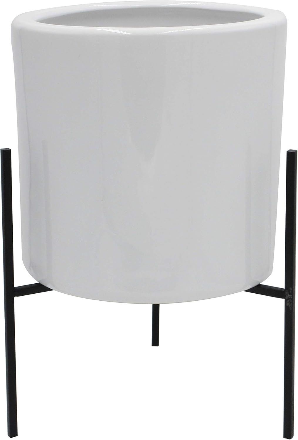 Rivet Mid-Century Ceramic Planter with Iron Stand, 18.9 H, Solid White - B0842H2F7C - Retail price U