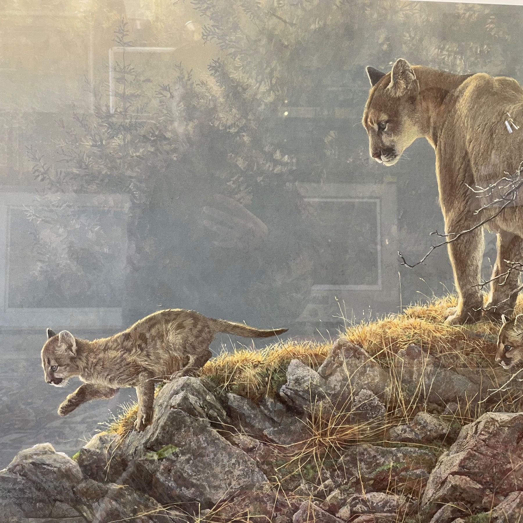 Robert Bateman "Excursion Cougar and Kits" (Double matted in a 23" x 30" frame)