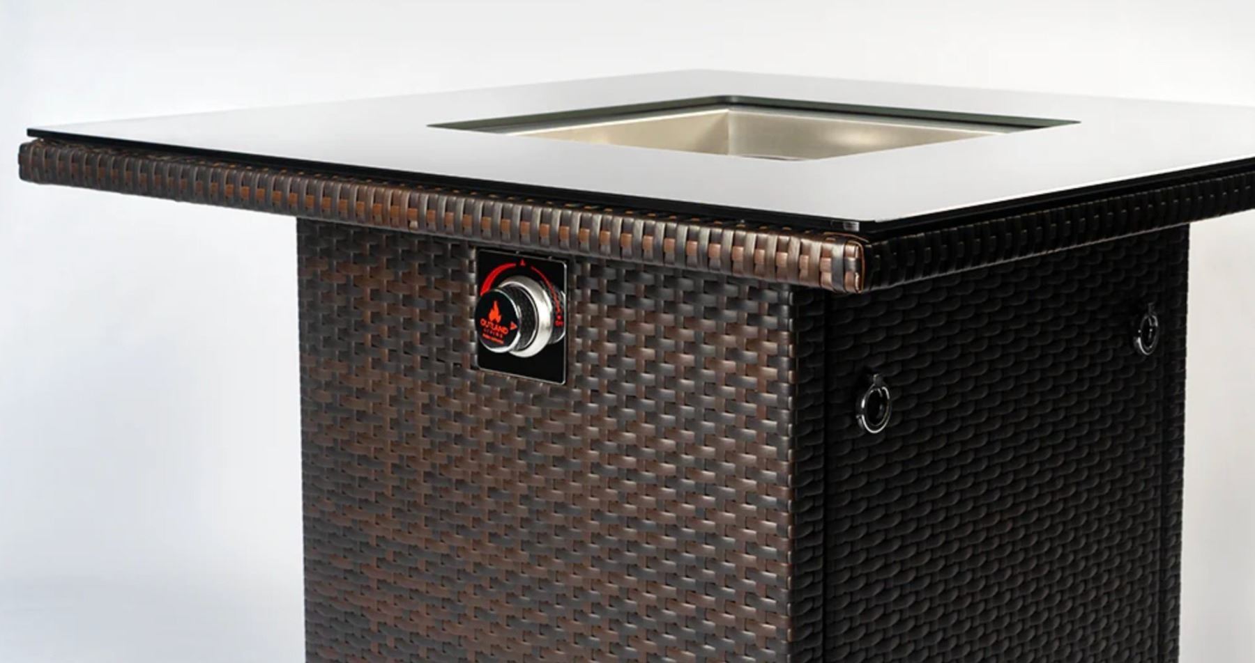 Material: High-quality aluminum frame with protective powder coating, HDPE resin wicker, 304 Stainless Steel burner and fasteners, chrome control knob, 8 mm black tempered glass tabletop