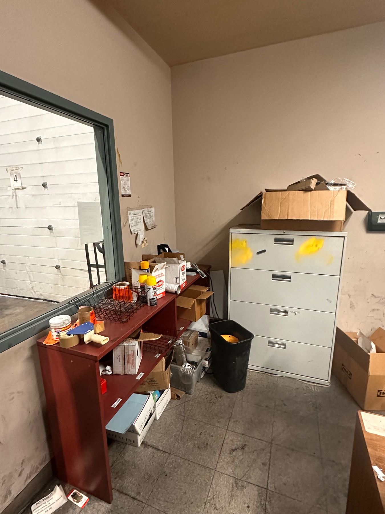 Room Lot of Assorted Misc - Office Desk, Filing Cabinet, Storage Shelf w/Contents (Electronics Not Included)