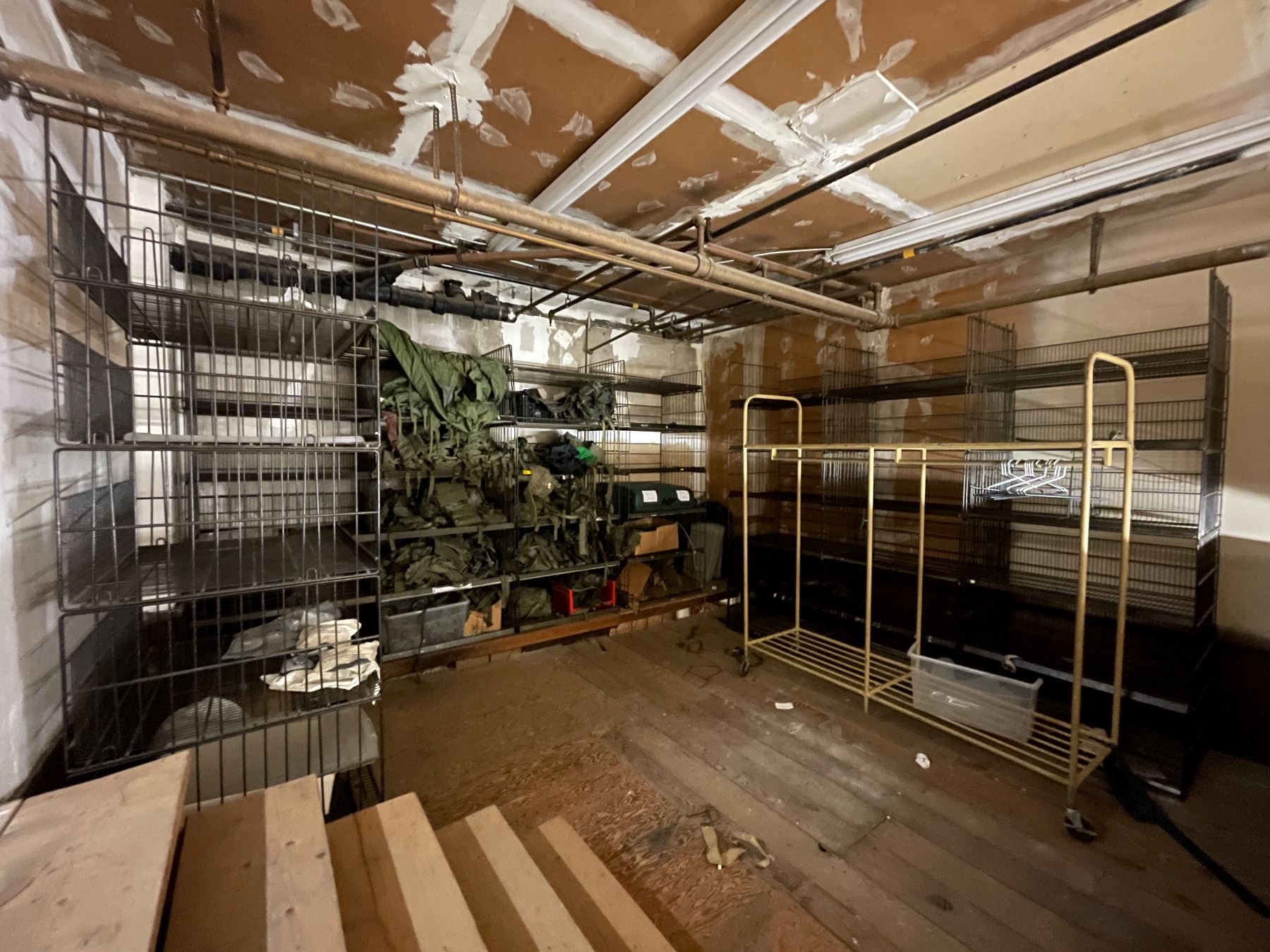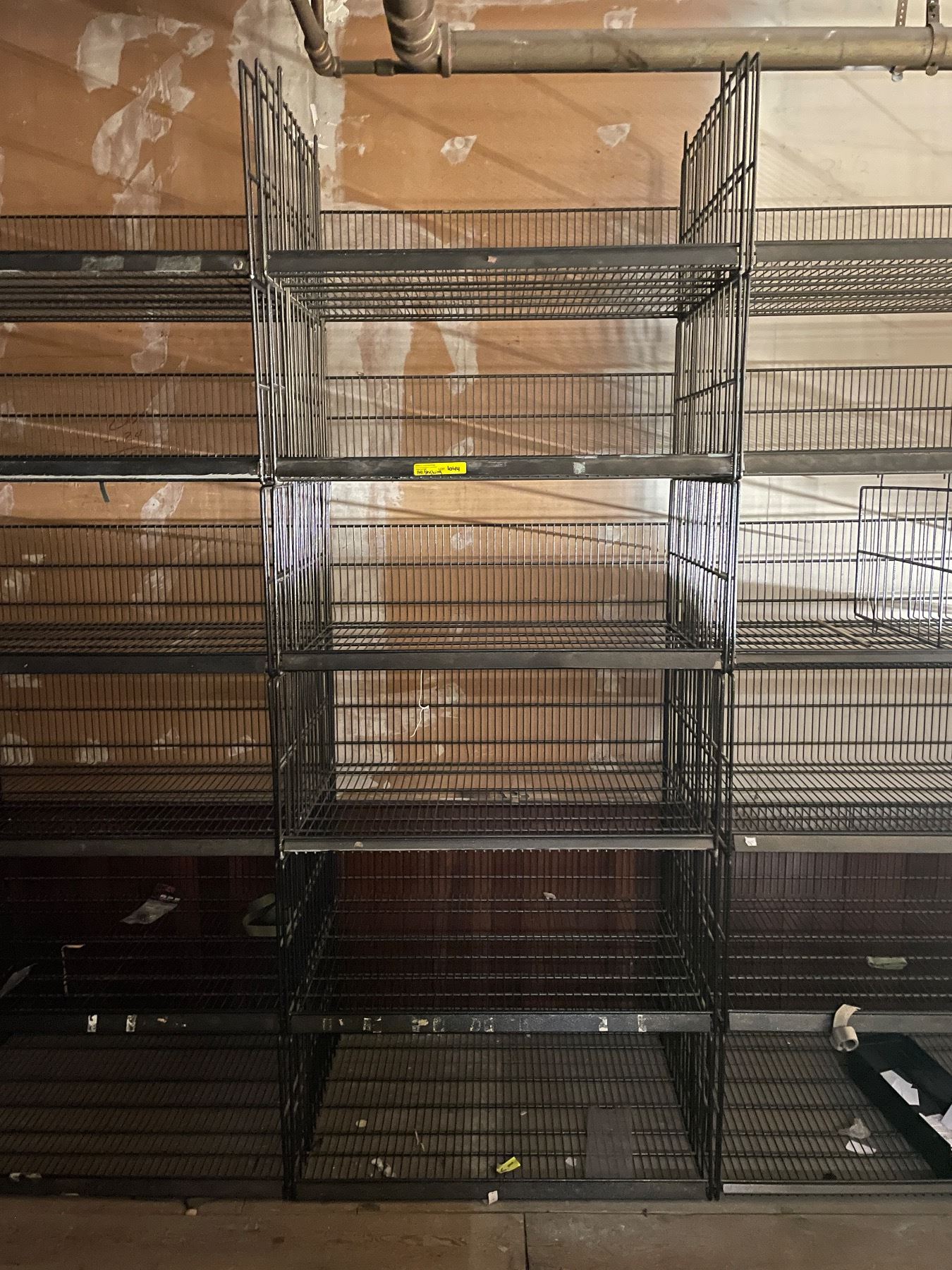 Room full of 6-tier metal shelving display units (approx 36in x 27in x 92in H) approx 8 shelving units