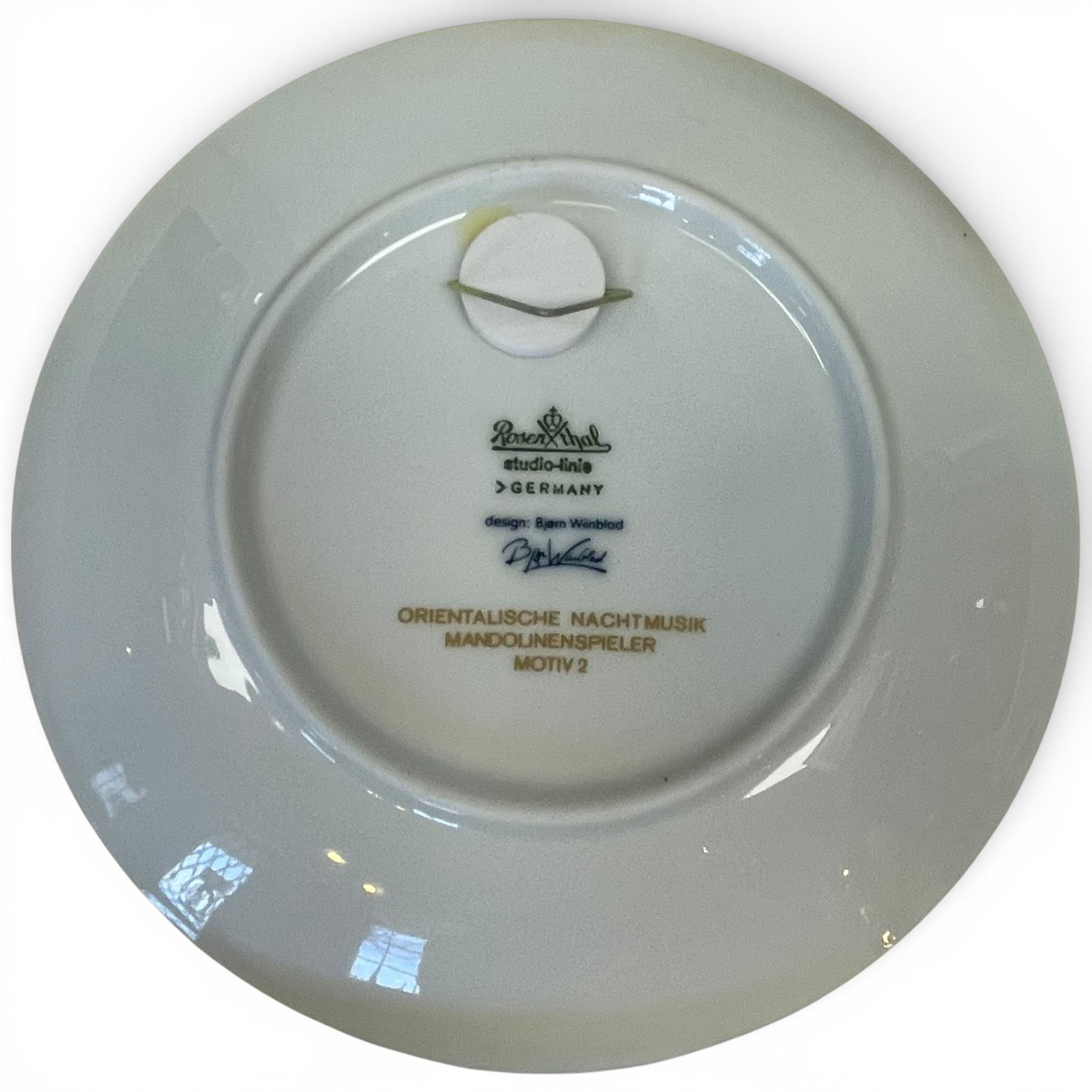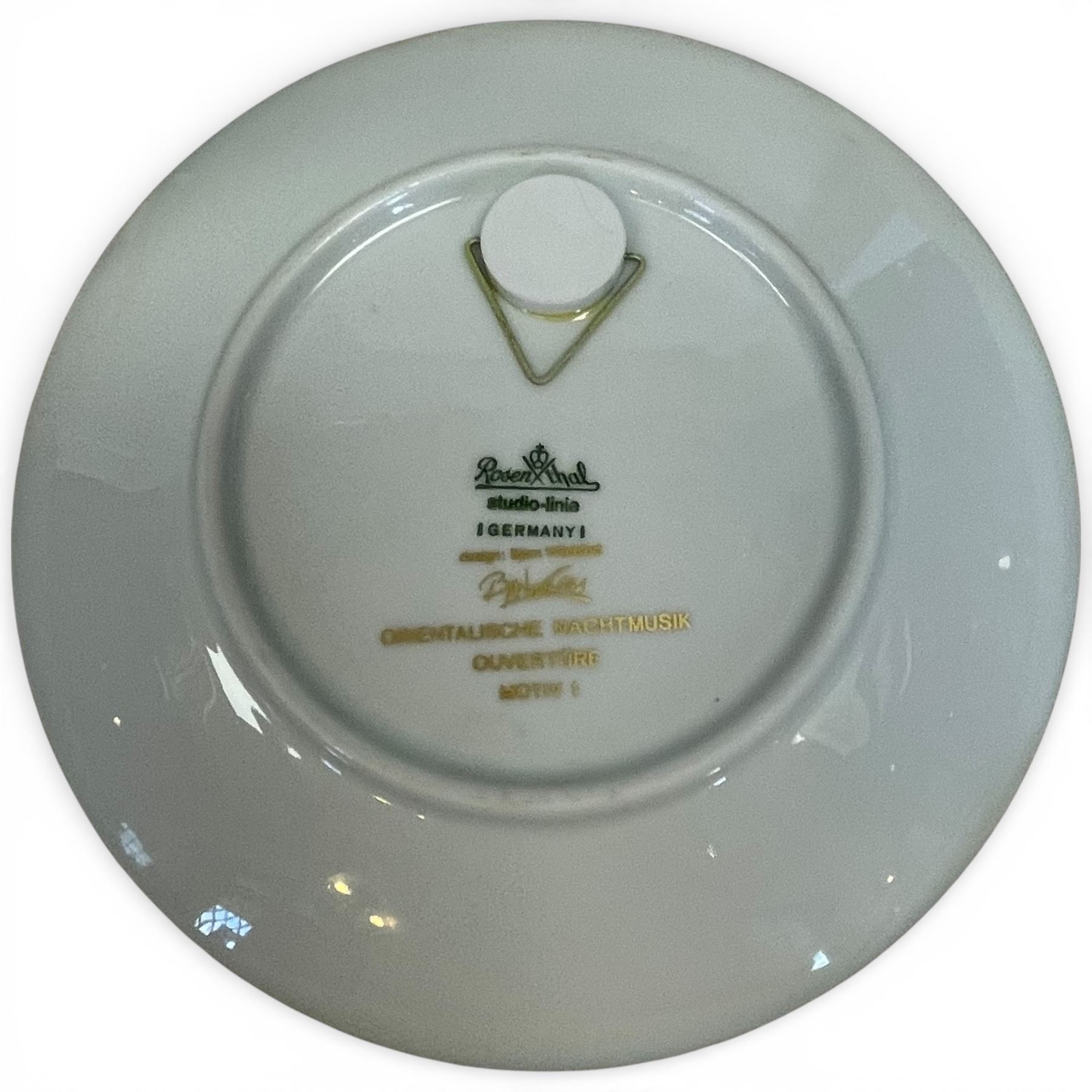 Lot includes Rosenthal Wandteller and Aladdin plates, each measuring 6-Inch in diameter, and a white Rosenthal vase standing 4.25-Inch tall. Items feature classic Rosenthal craftsmanship. Item is as pictured.