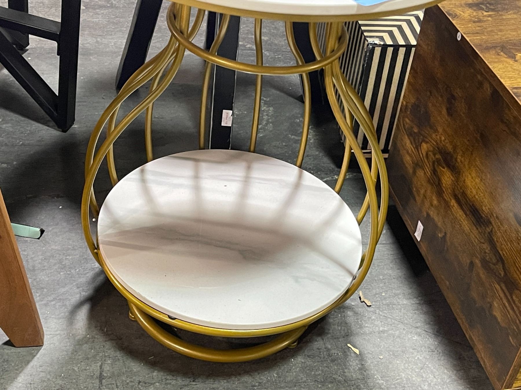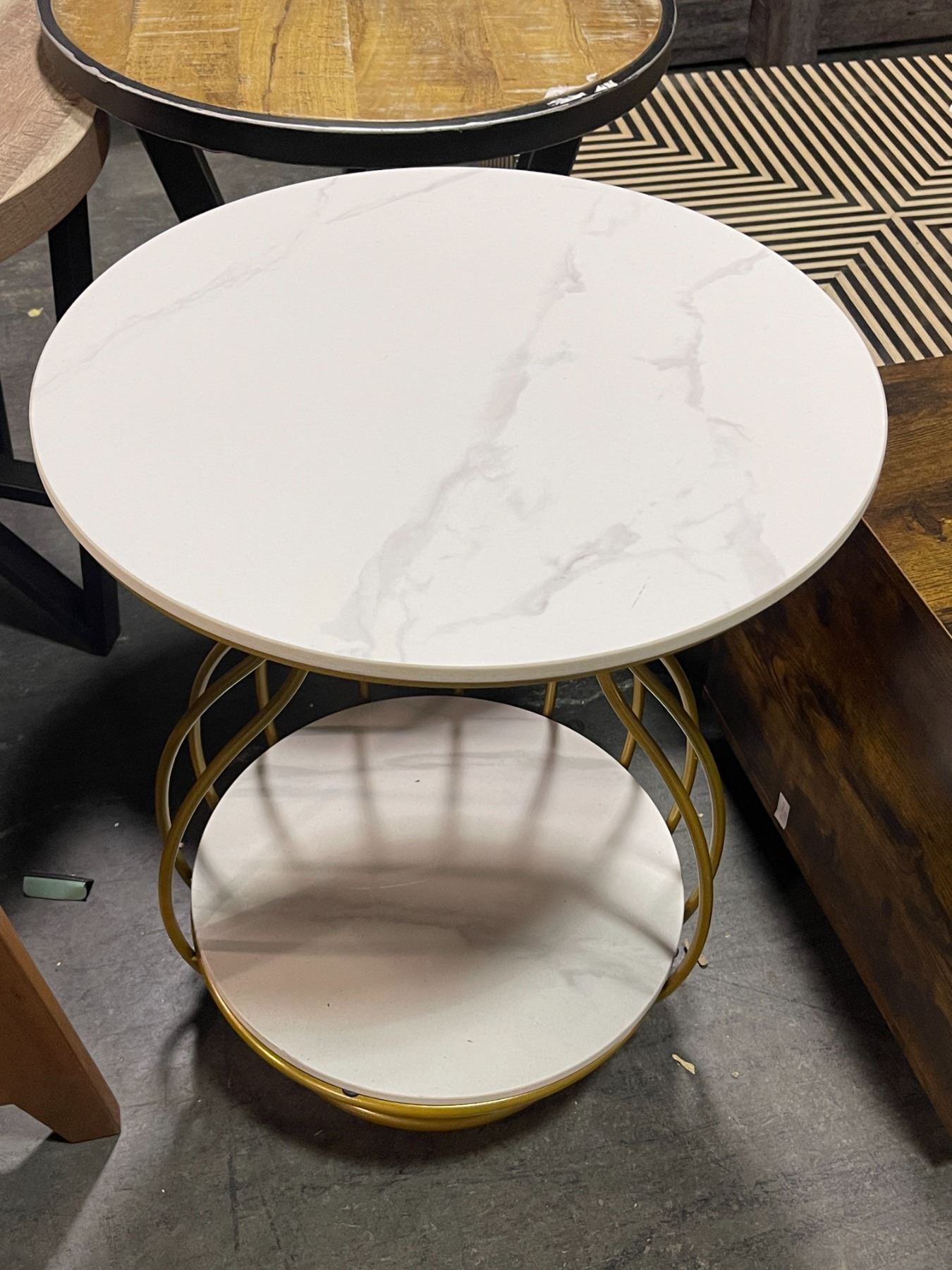 Round Faux Marble Top Side Table, Approx. H25" x Dia. 19.5"