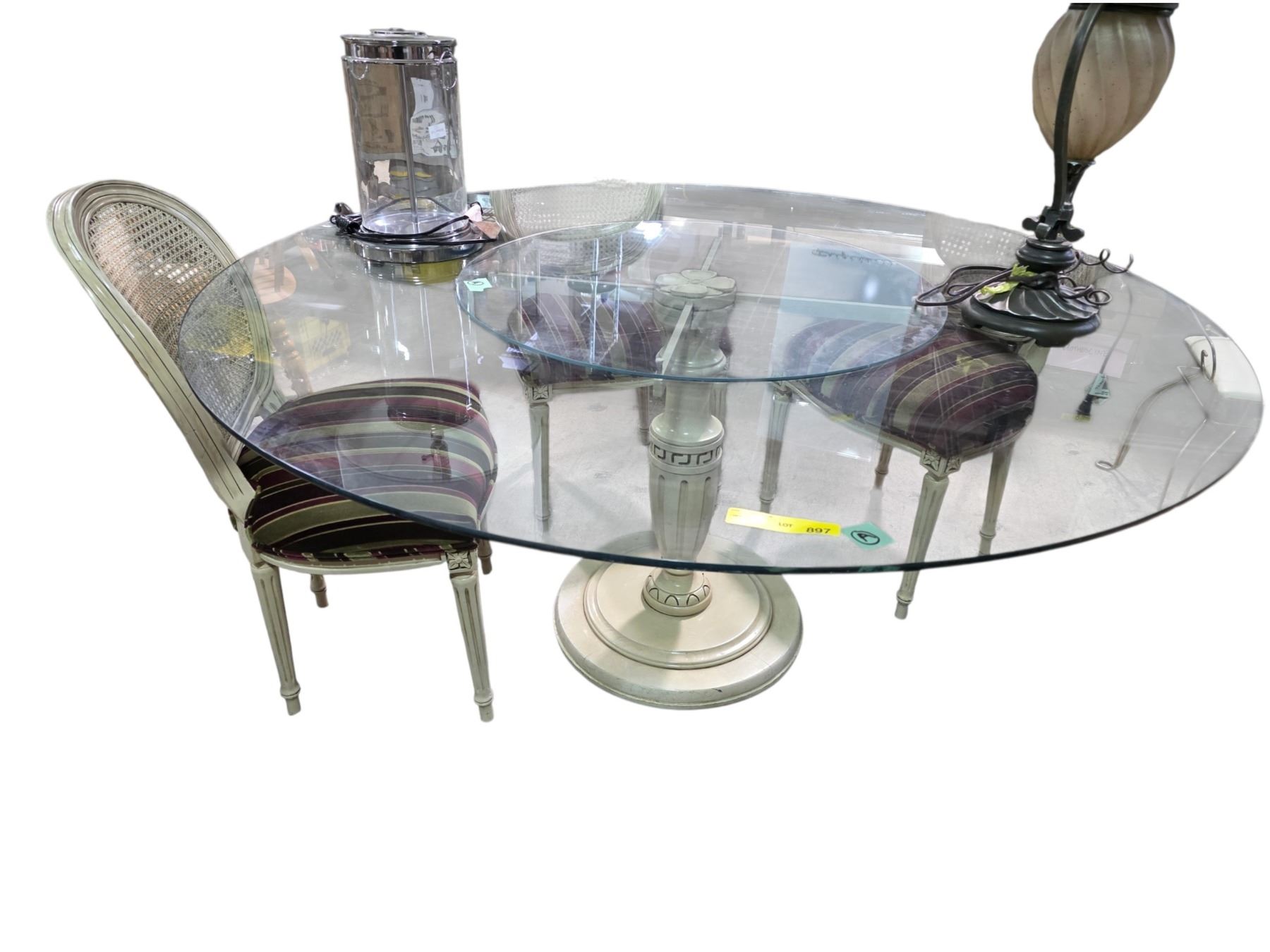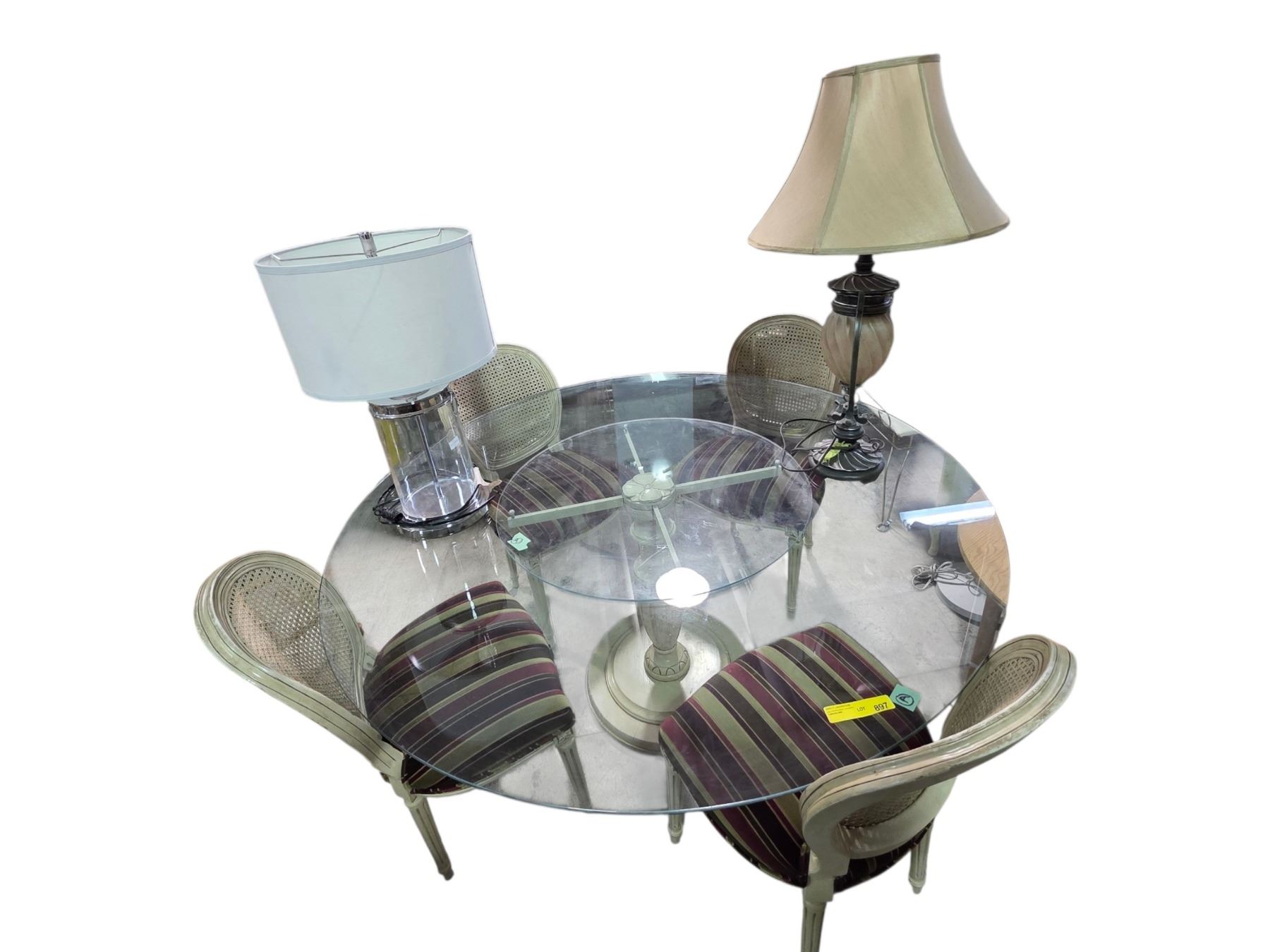 Round Glass Top Dining Table w/4 Matching Chairs & Assorted Table Lamps & Wall Mirror