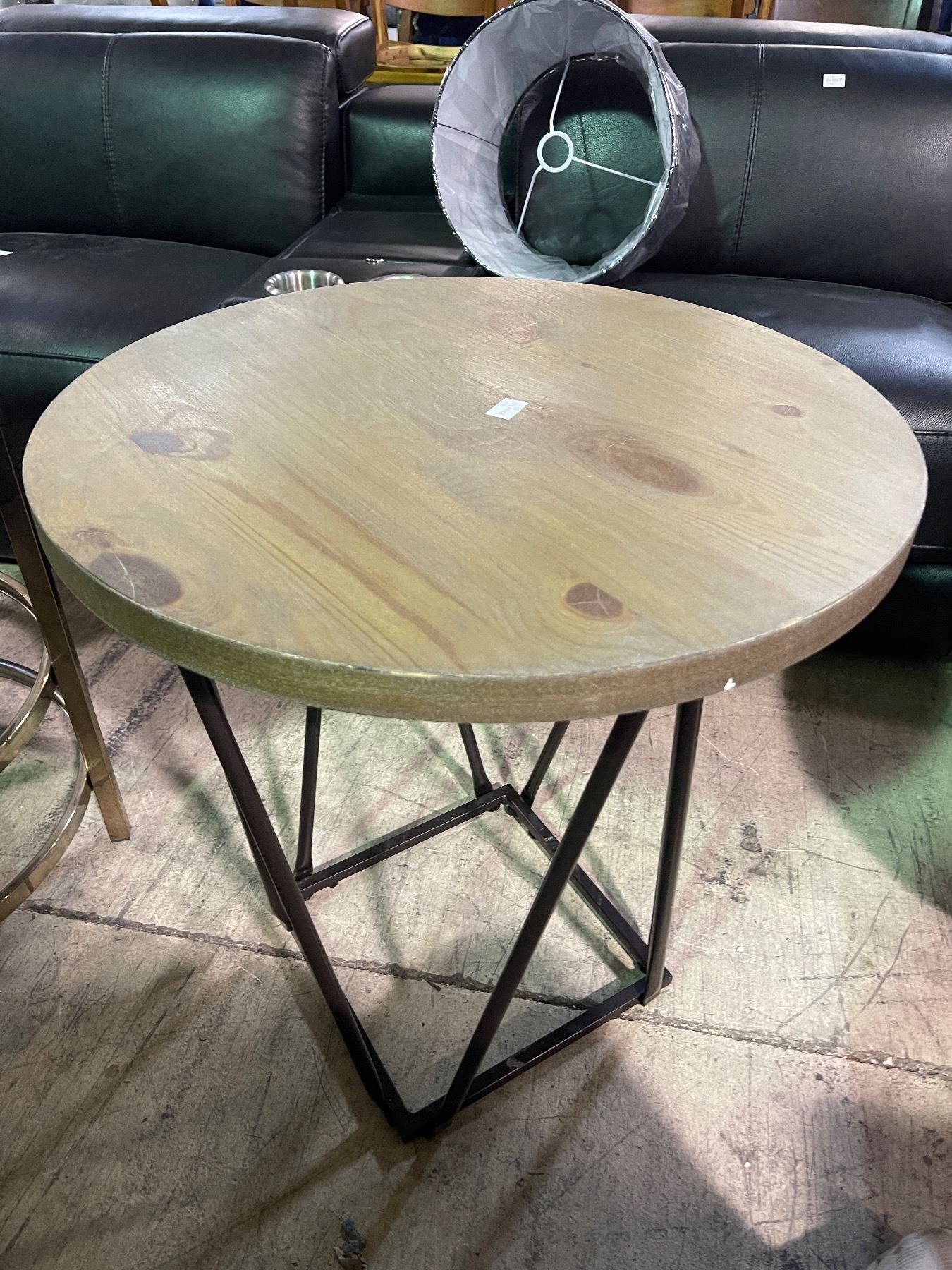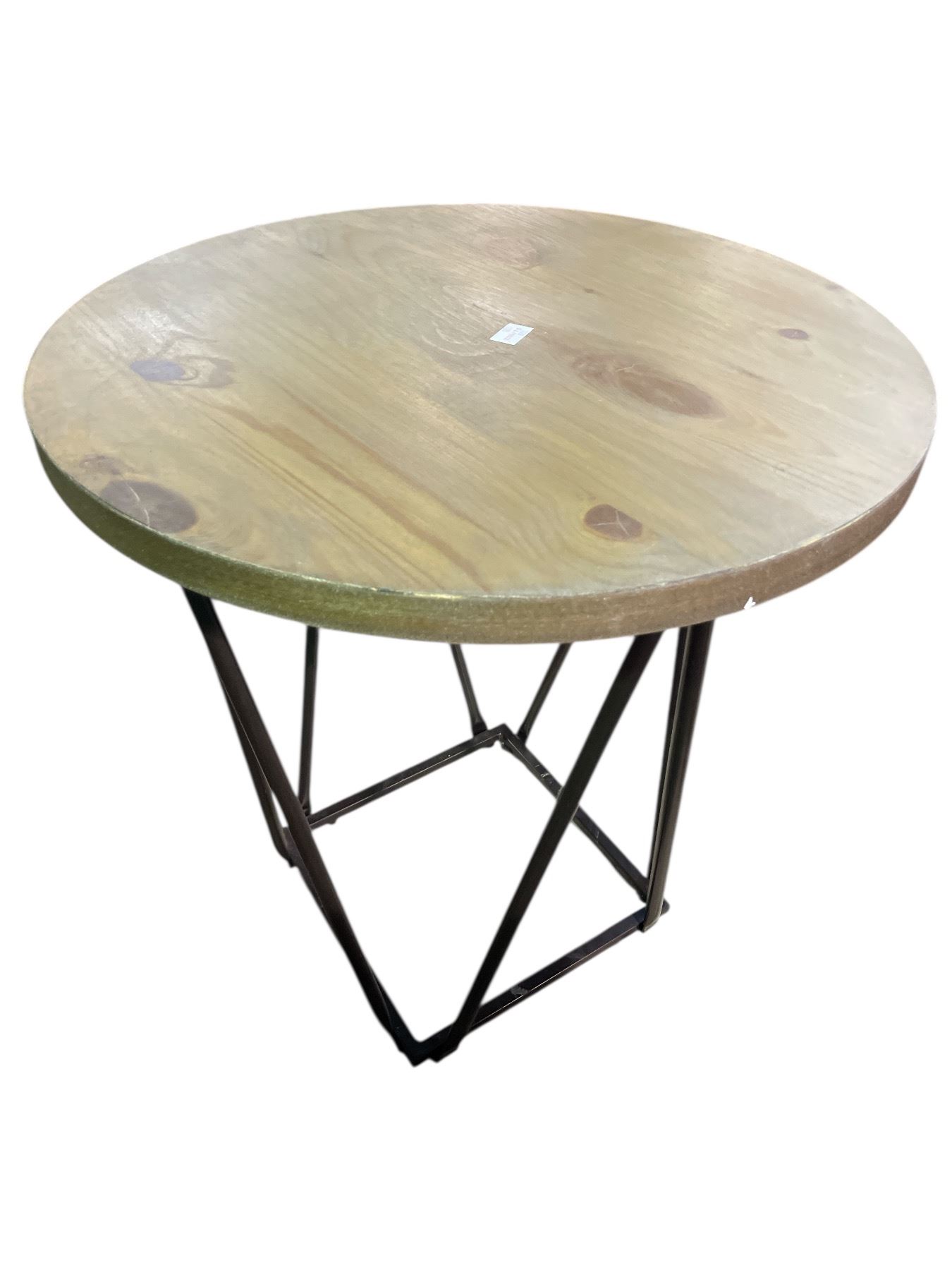 Round Natural Wood Side Table with Black Metal Base, H25" x Dia. 23.5"