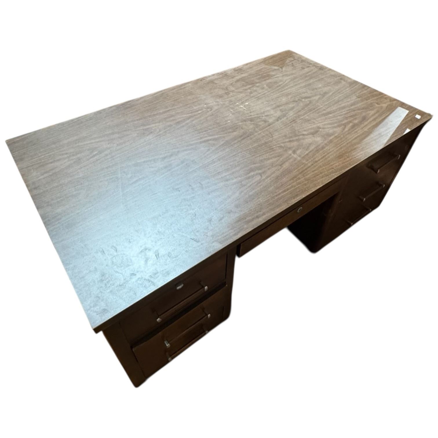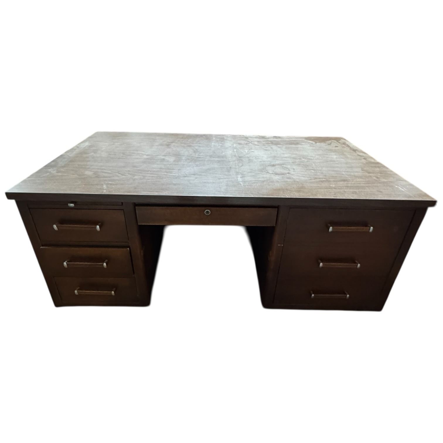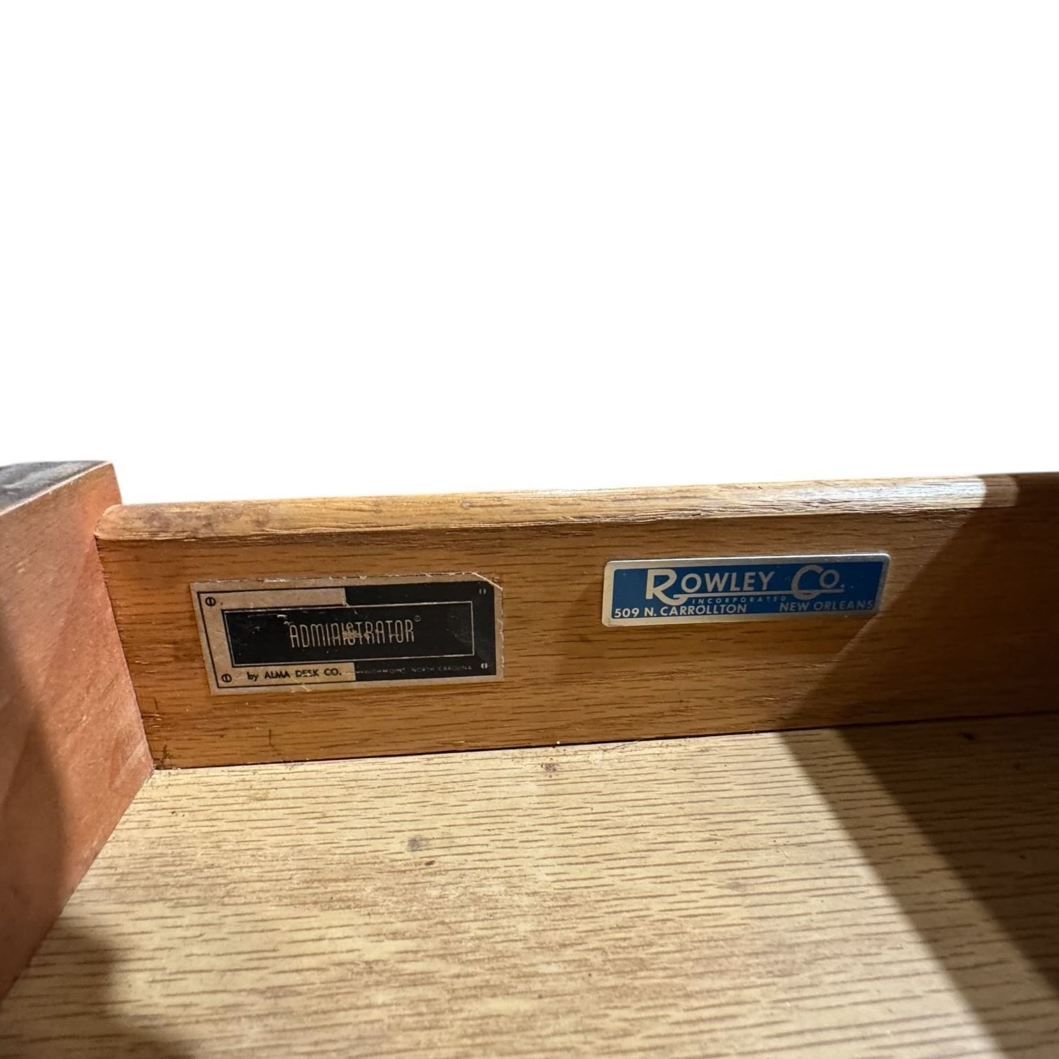 Rowley Co Administer wood desk featuring dimensions of 60-Inch length, 35-Inch width, and 29-Inch height. Constructed from wood, this desk offers a spacious work surface suitable for various uses. Item is as pictured.