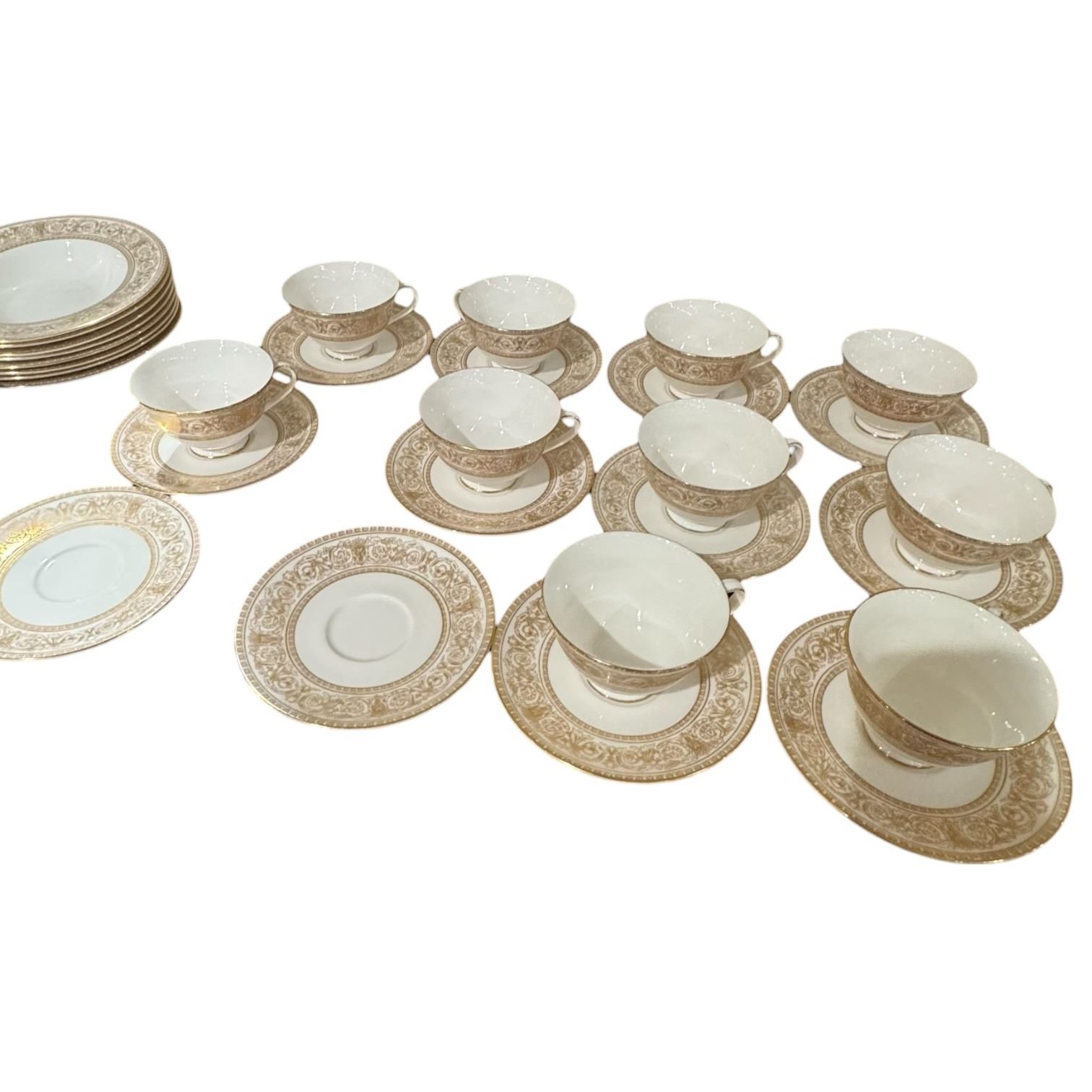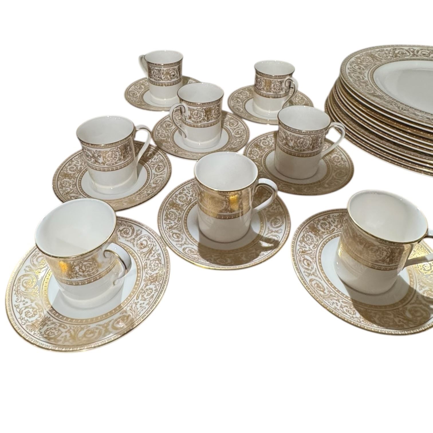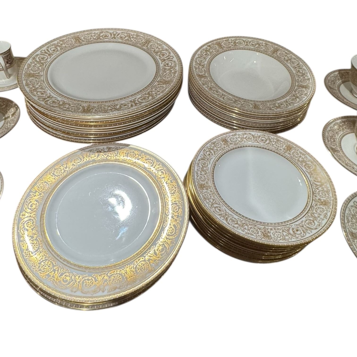 Royal Doulton "Sovereign" 50 Piece Bone China Dinnerware Set * 10 Tea cups with Saucers, 8 Demitasse Cups with Saucers, 8 Bowls and 25 assorted plate.