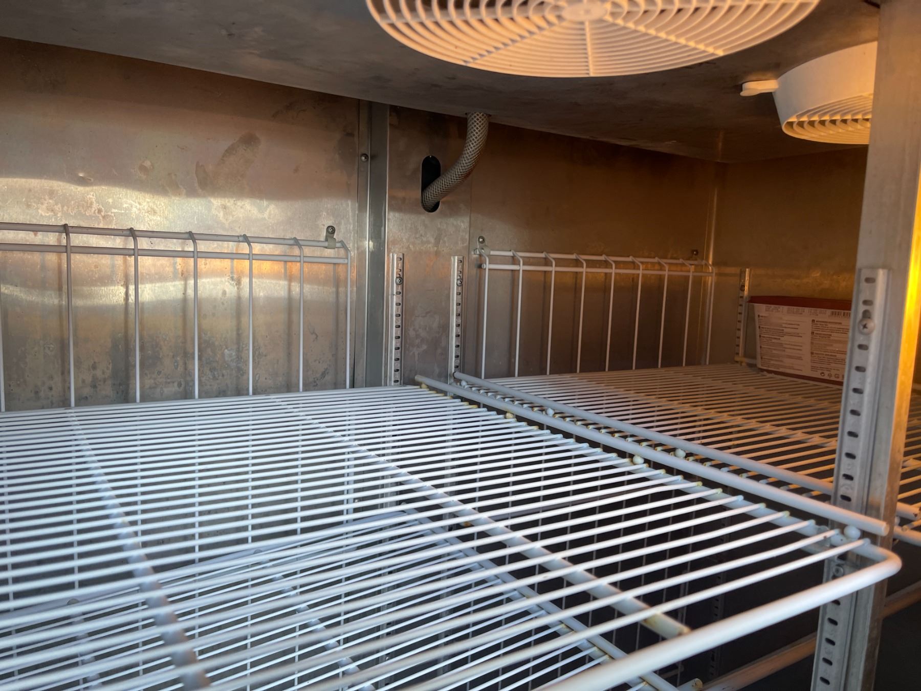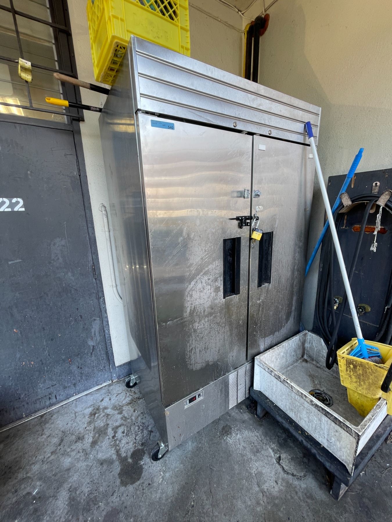 Russel Stainless steel 2 door commercial freezer on wheels - 48x31x82.5" - Tested & working