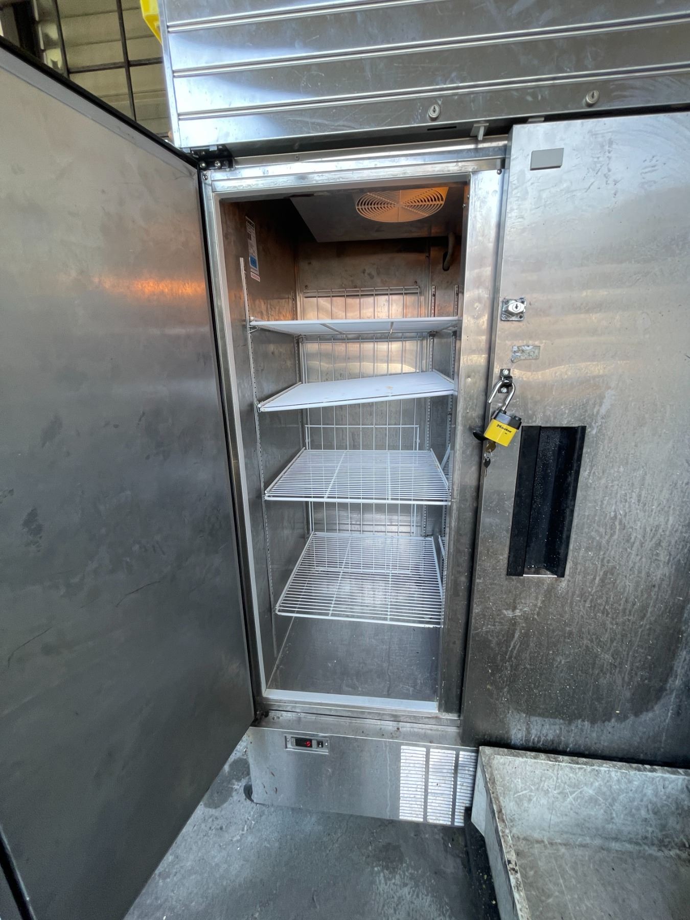 Russel Stainless steel 2 door commercial freezer on wheels - 48x31x82.5  - Tested & working