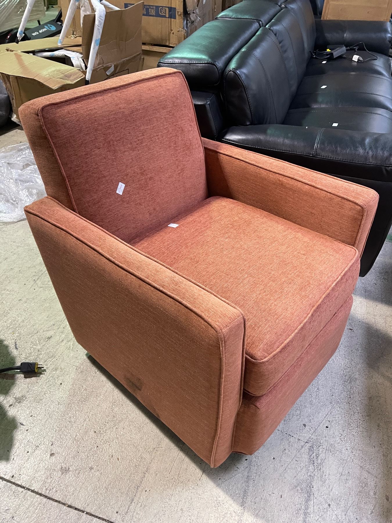 Rust Upholstered Swivel Accent Chair, H31" x 27" x 29"