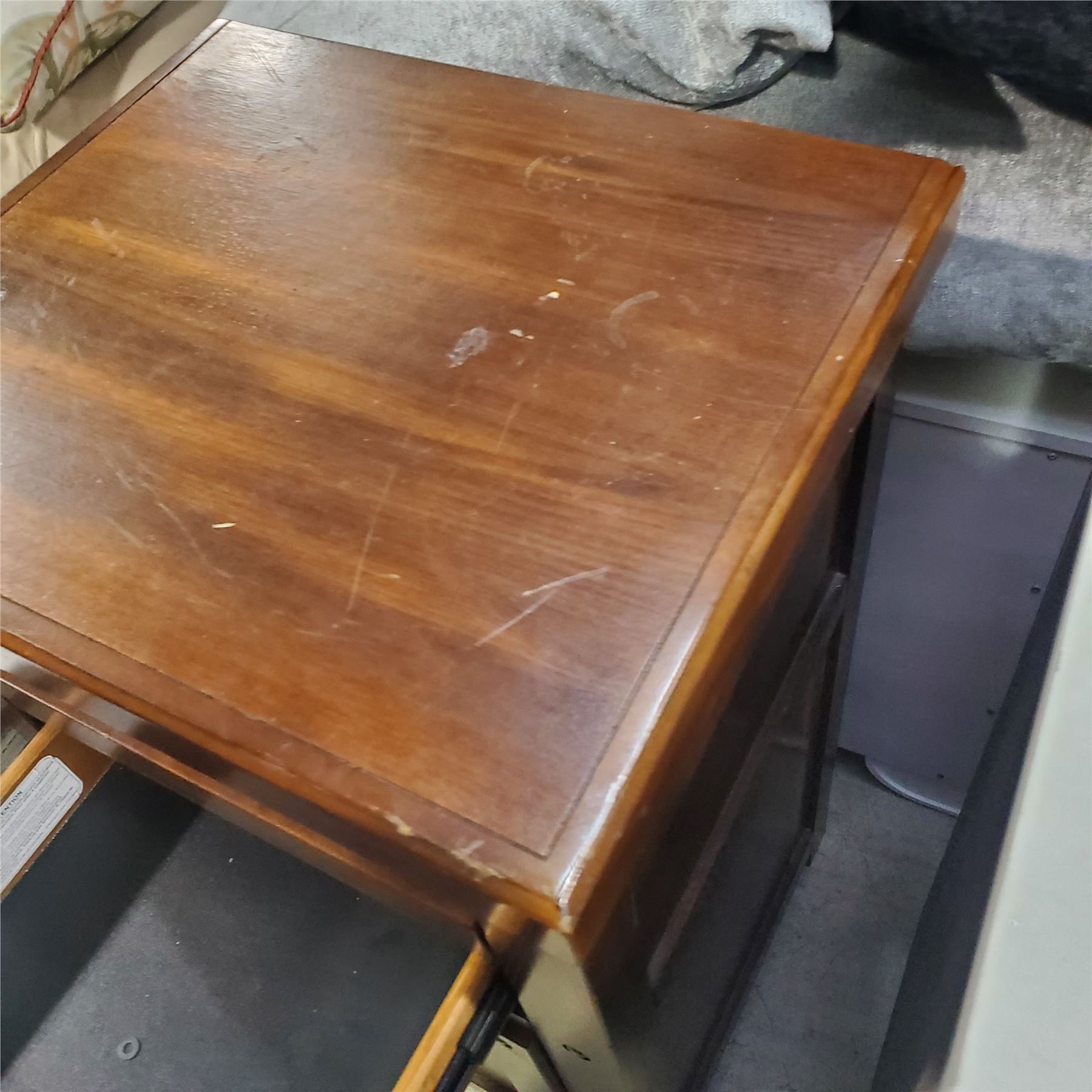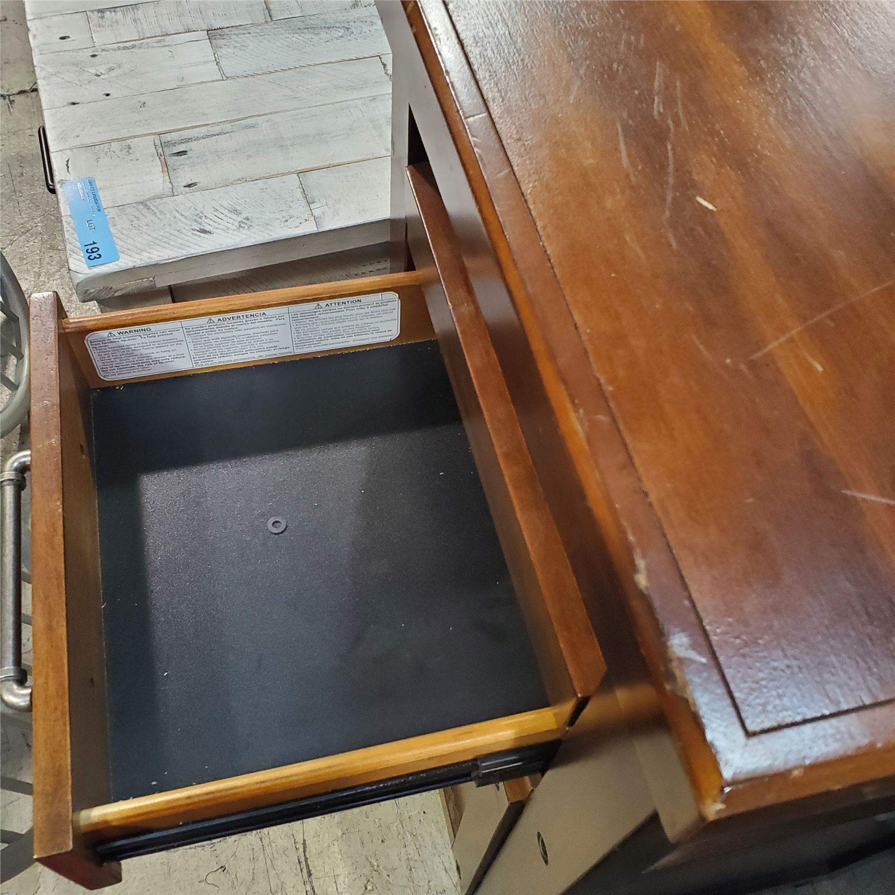 Rustic Brown Home Office Counter File Deak, Approx. H36" x W21" x D18" (Overall condition is good, with minor scratches on the top)