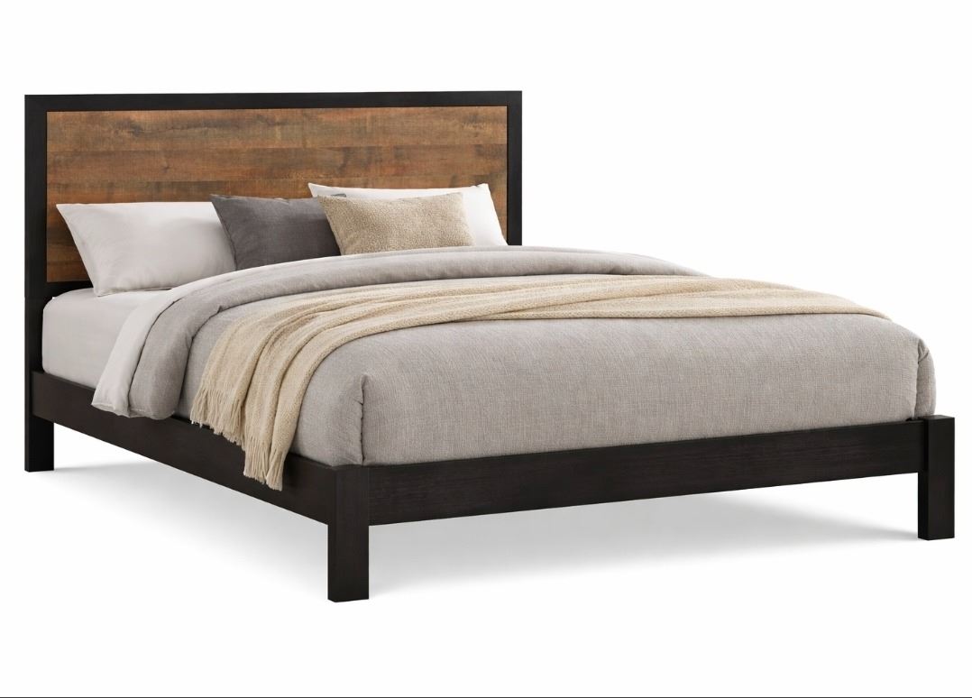 Rustic Brown Wooden Bed Frame, Headboard Size (Approx. 48"H x 67"W) - Assembly Required, Sold As-Is