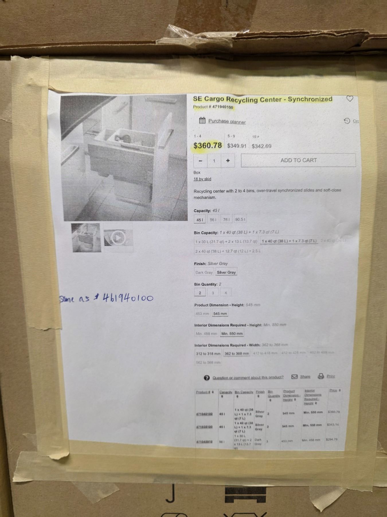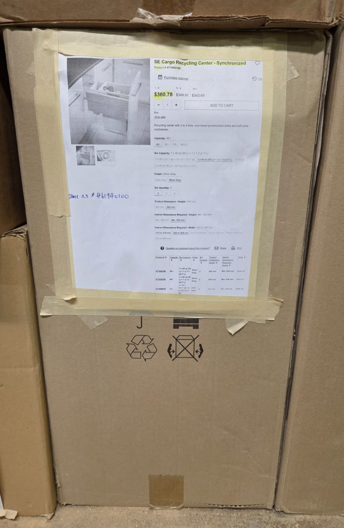 SE Synchronized under cabinet double recycling center - Wholesale Value: $360