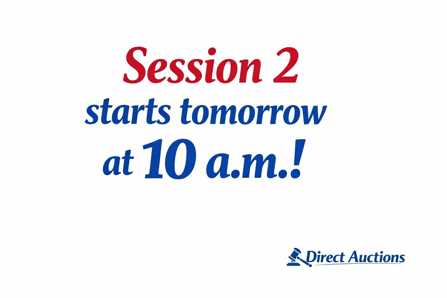 THANK YOU SO MUCH FOR BIDDING IN THIS SESSION OF THE AUCTION. SESSION 2 WILL BE TOMORROW AT 10AM.