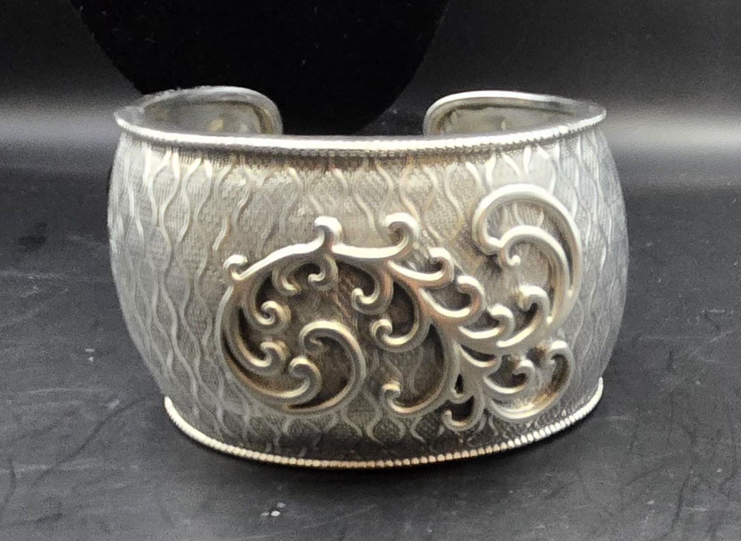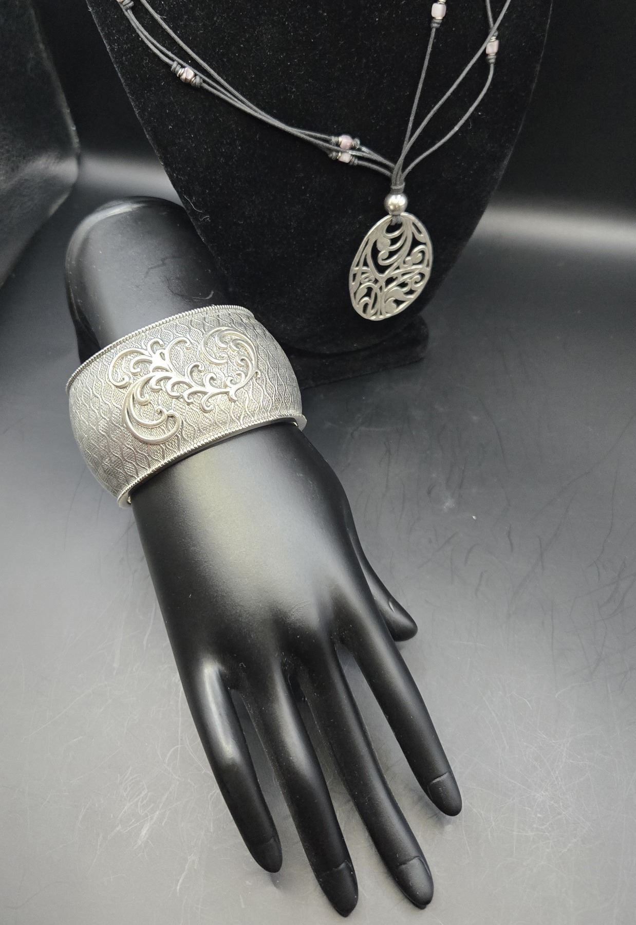 SILPADA STERLING SILVER FILIGREE PENDANT NECKLACE & WAVE CUFF BRACELET. BRACELET MEASURES APPROX. 7.5†FROM EDGE TO EDGE AND OPENING MEASURES APPROX. 1’ AND 1.5’ FROM TOP TO BOTTOM. BRACELET – 52.6 GRAMS. PENDANT - 7.8 GRAMS