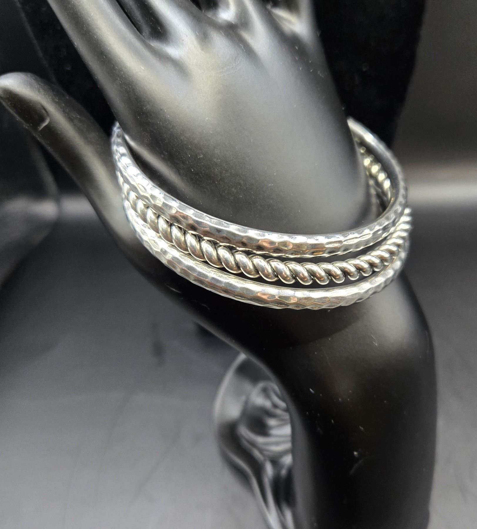 SILPADA STERLING SILVER SET OF 3 HEAVY BANGLE BRACELETS. OPENING FRO EACH BANGLE IS APPROX 2.5â€. 67 GRAMS
