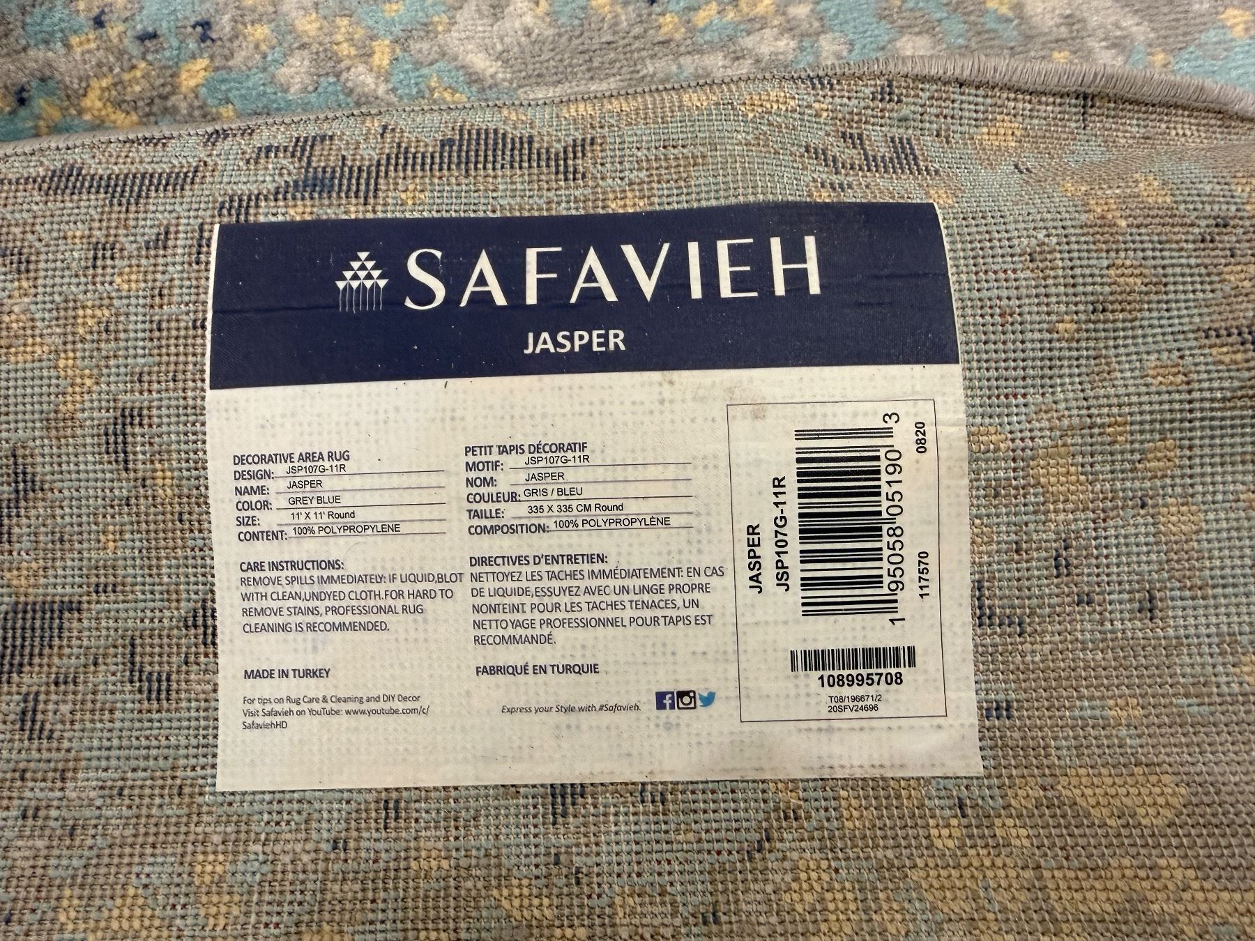 Safavieh Jasper Grey Blue Round Area Rug - Approx 72in x 72in