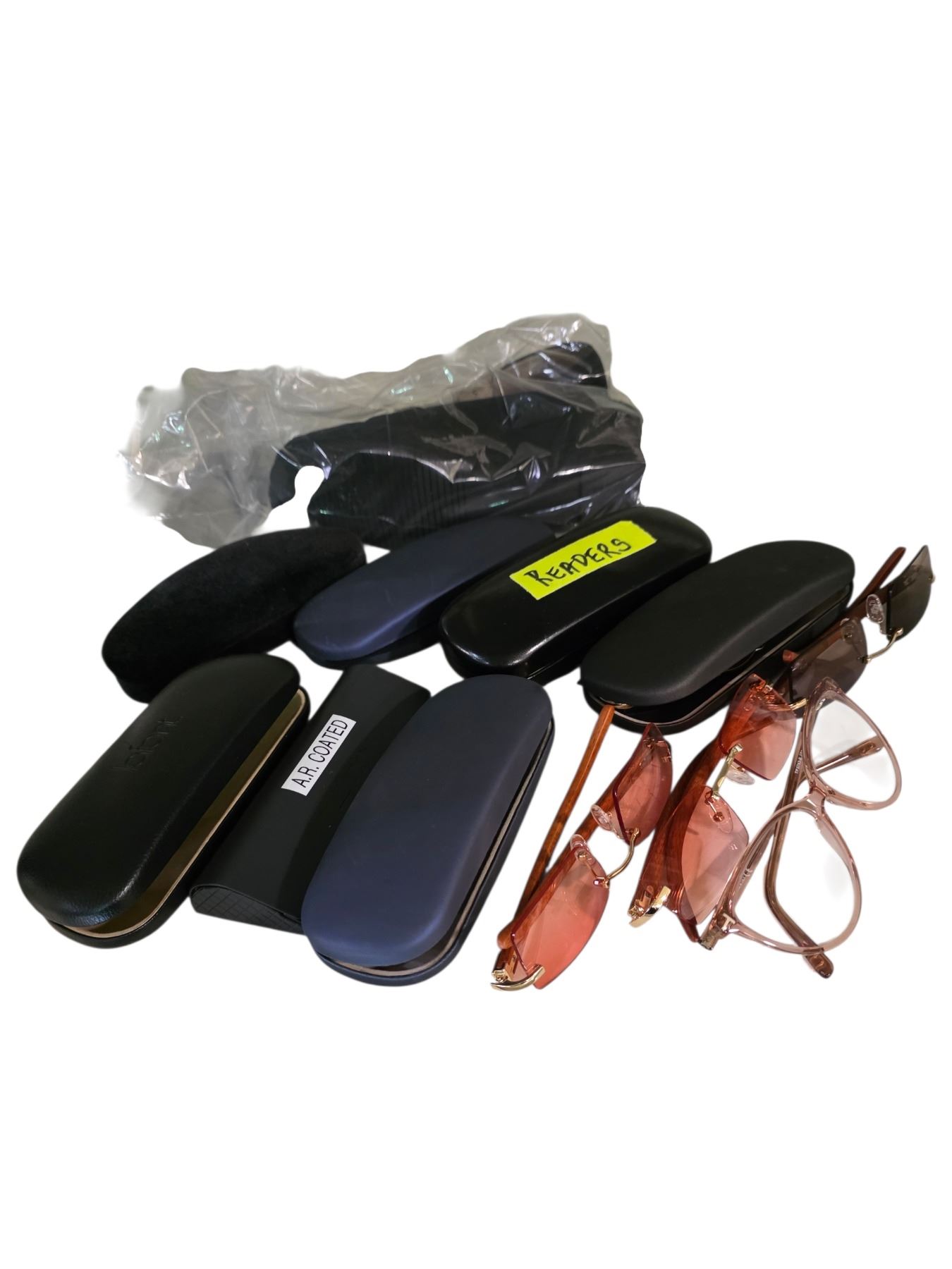 Salvatore Ferragamo Black Loafers, Women’s size 5 & 10 Pairs of Reading Glasses & Tinted Glasses (Shoes and some of the glasses are preowned)