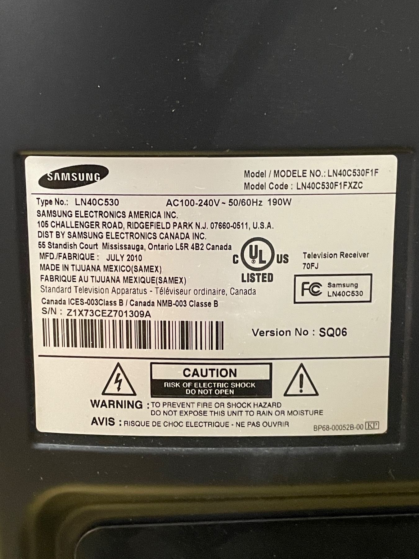 Samsung 40" LCD TV (LN40C530) – Untested, Cables Excluded
