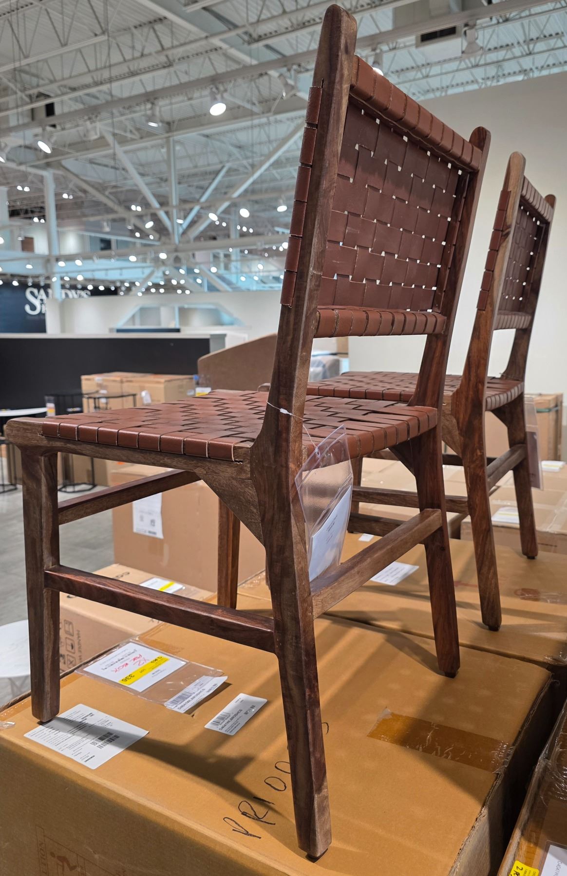 Sandy's - BNIB Set of 2 Wood Leather Brown Chairs - RV: $1130 CAD