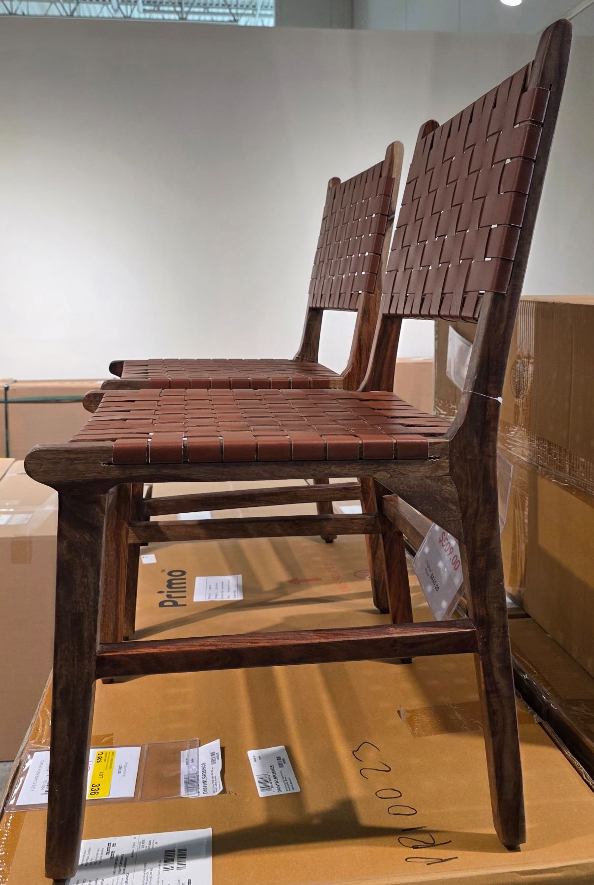 Sandy's - BNIB Set of 2 Wood Leather Brown Chairs - RV: $1130 CAD