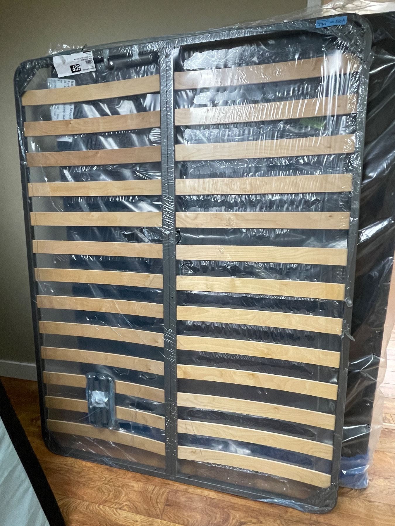 Sandy's - Group of 2: New Boxspring (52.5" x 74") and Metal Bed Frame - store display item without box