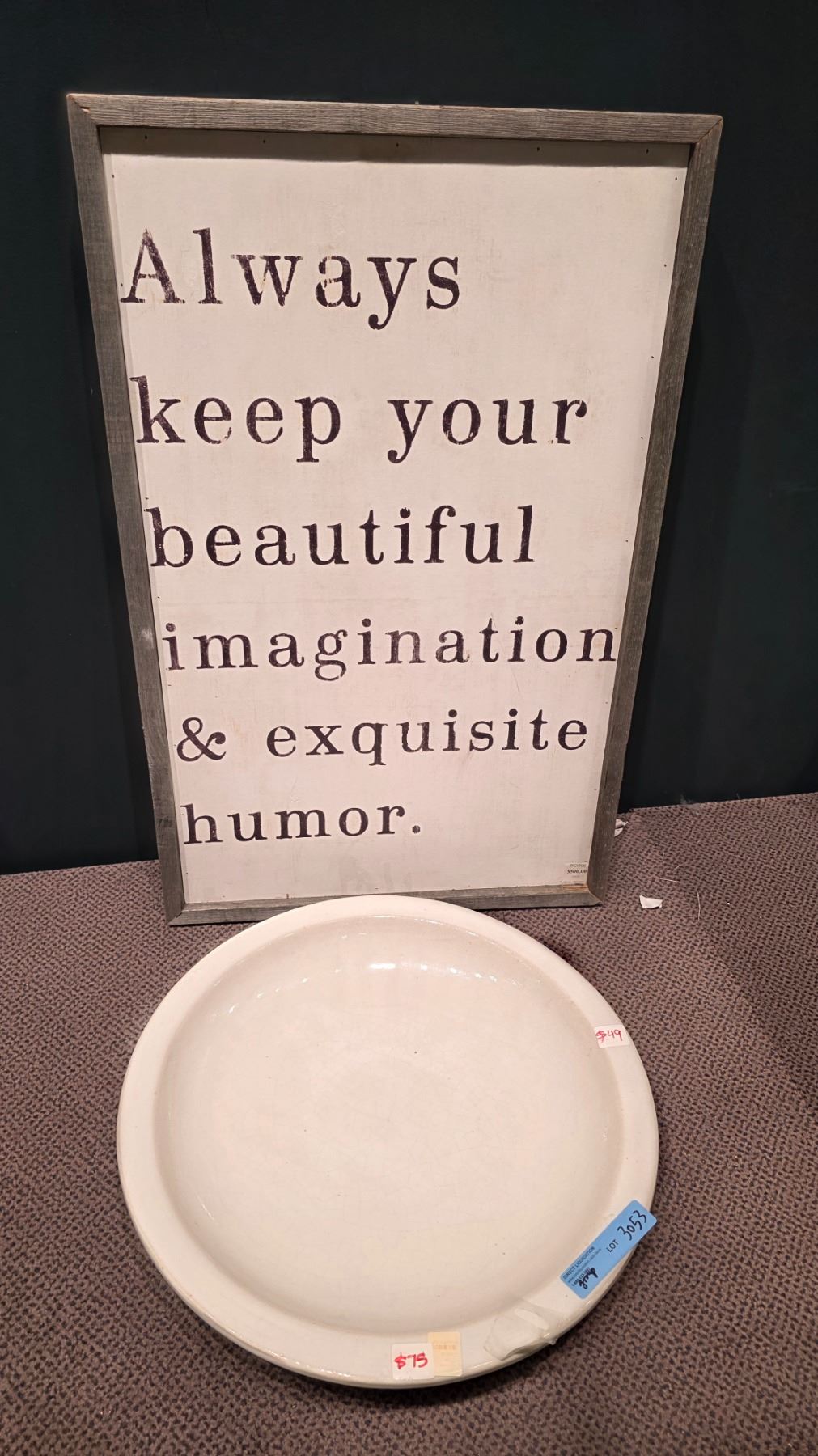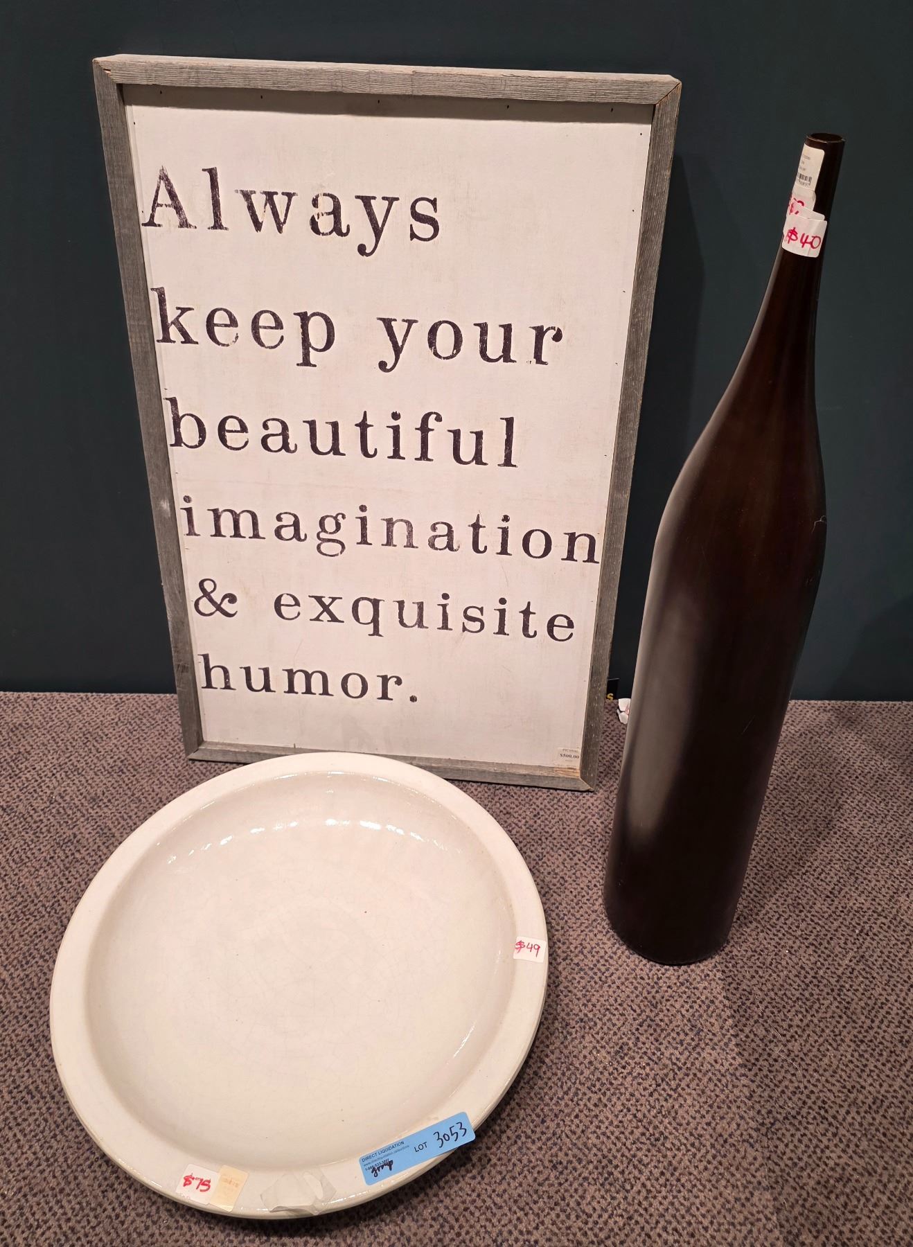 Sandy's - Group of 3 Items - RV: $850 CAD (Vase H34", Plate Dia. 20", Frame 34x21")