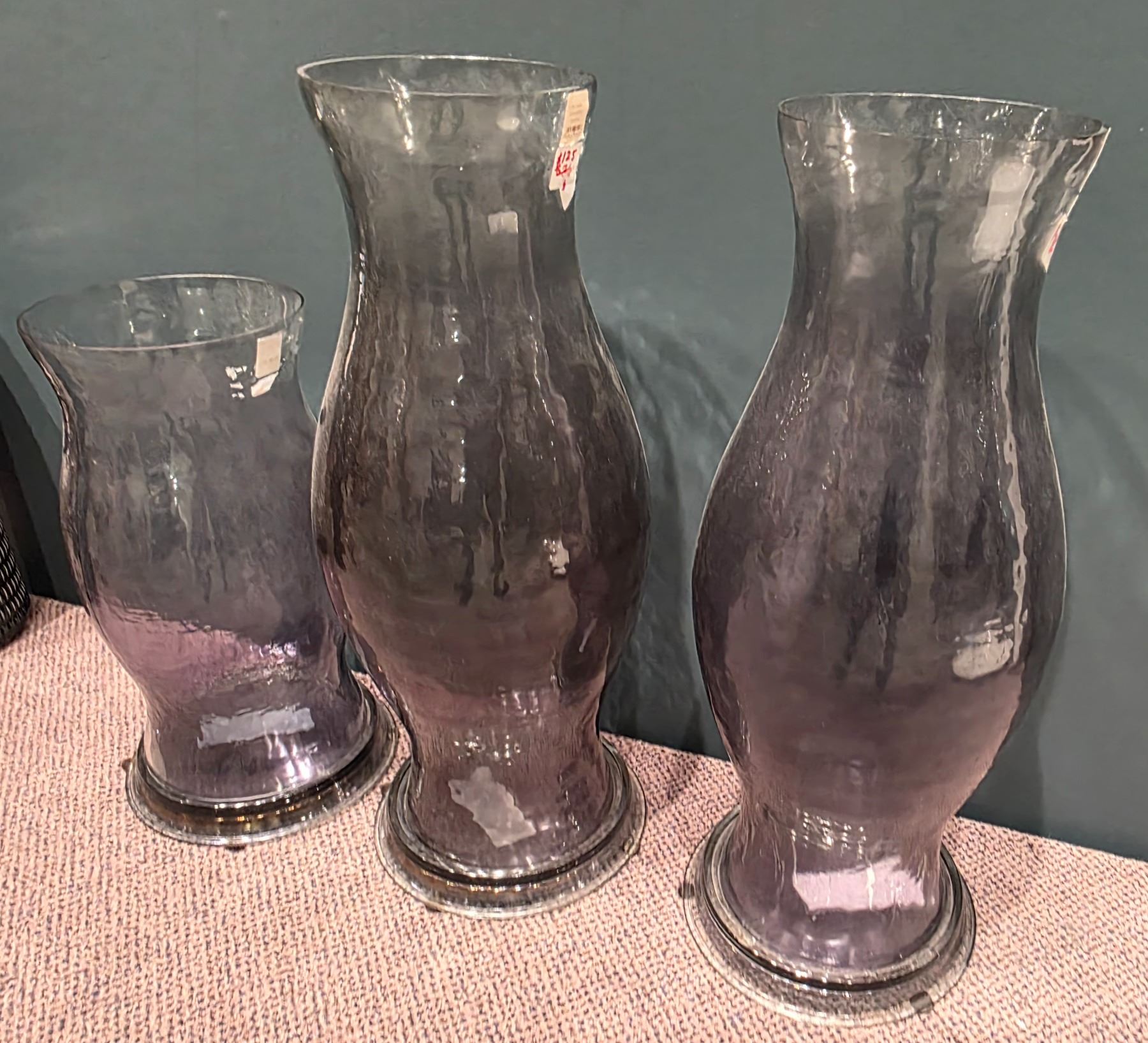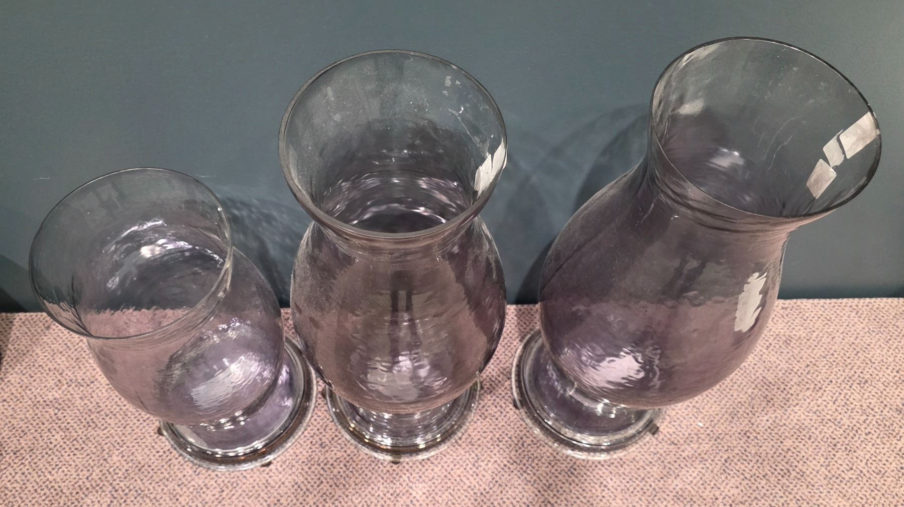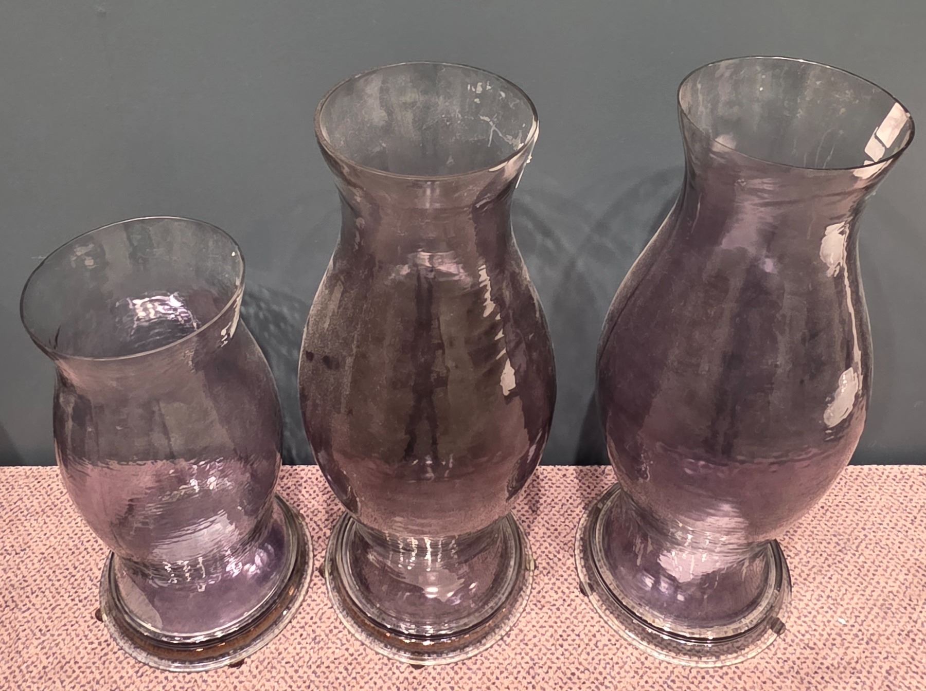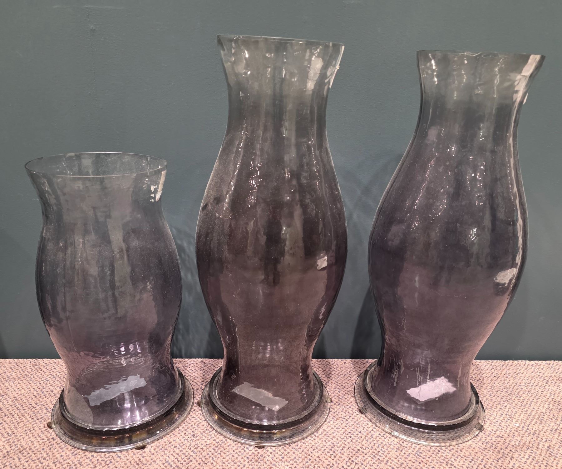 Sandy's - Group of 3 Large Glass Candle Holders - RV: $1190 CAD, 17.5" & 25" Tall