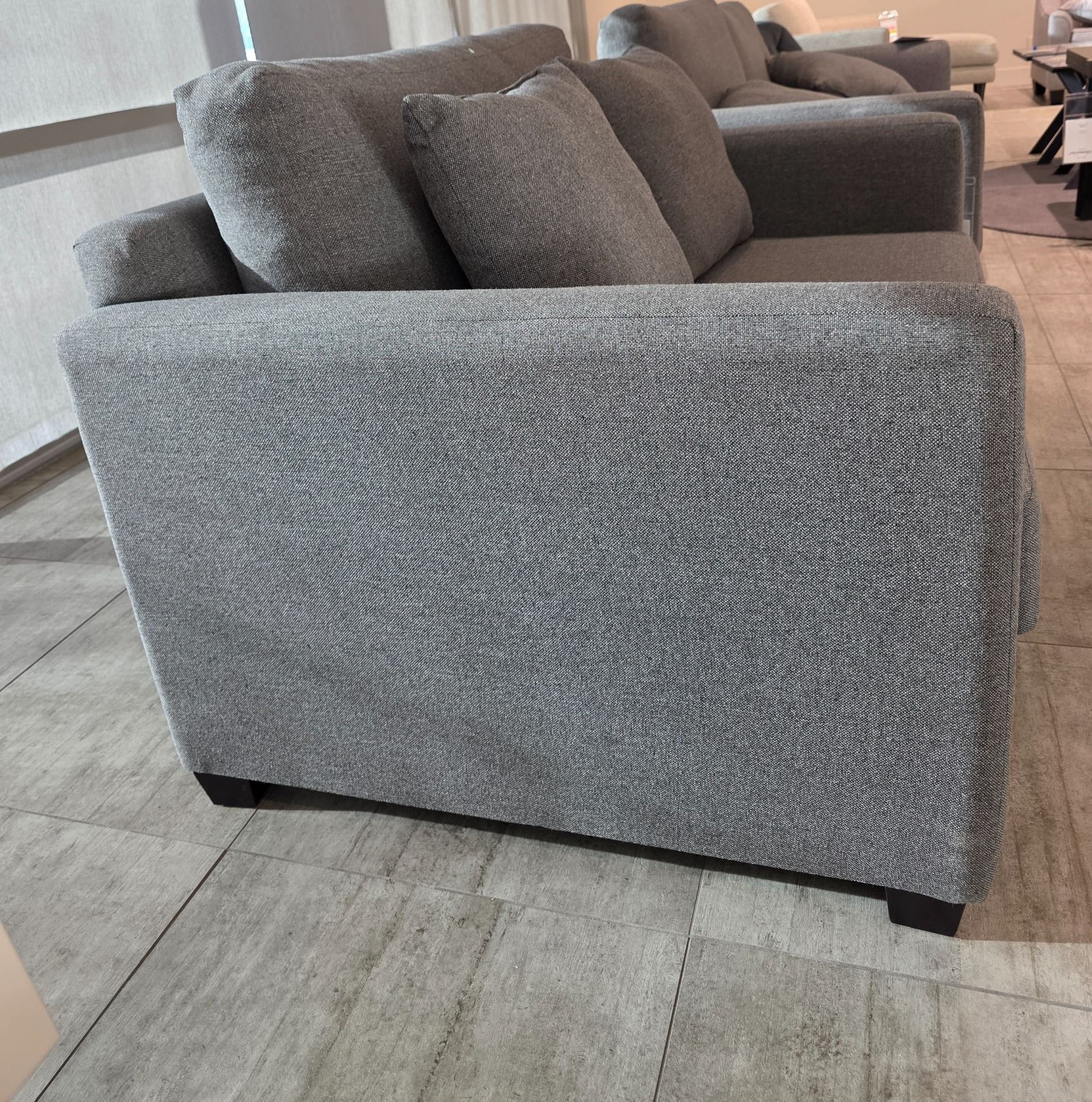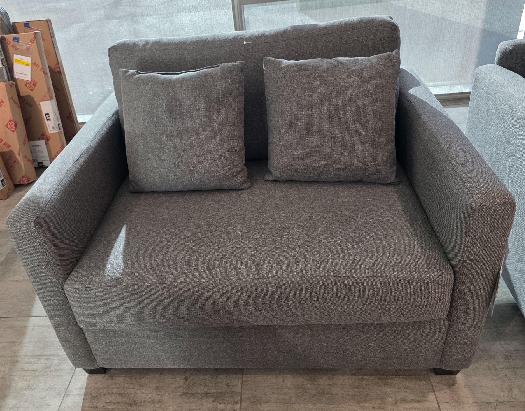 Sandy's - New Amara Macarena Dove Fabric Loveseat - RV: $1700 CAD - Made in Canada - H30" x W50" x D39" (ELI0757)