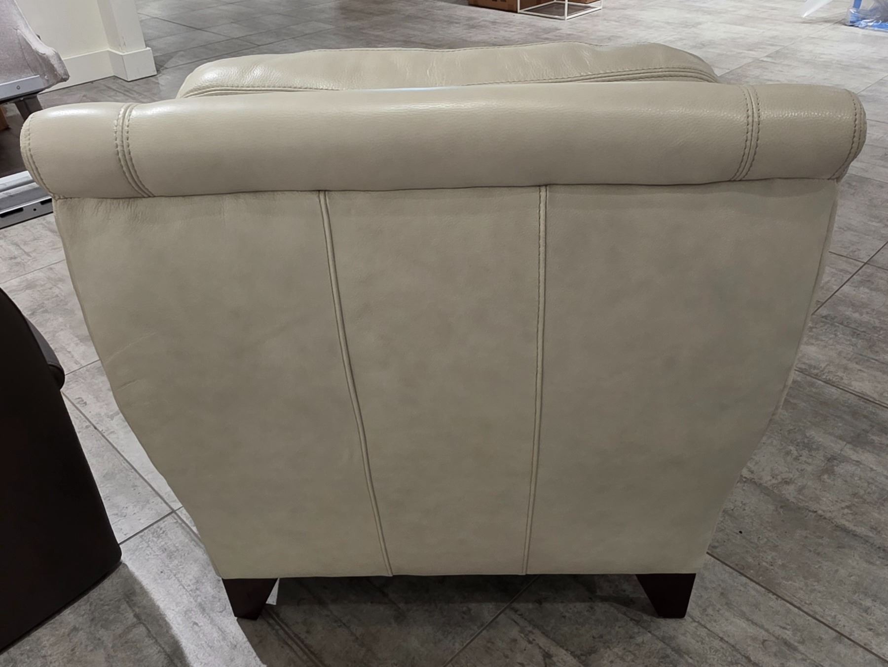 Sandy's - New Beige Leather Chair - RV: $2400 CAD - H35" x W35" x D34" (SIL0030)