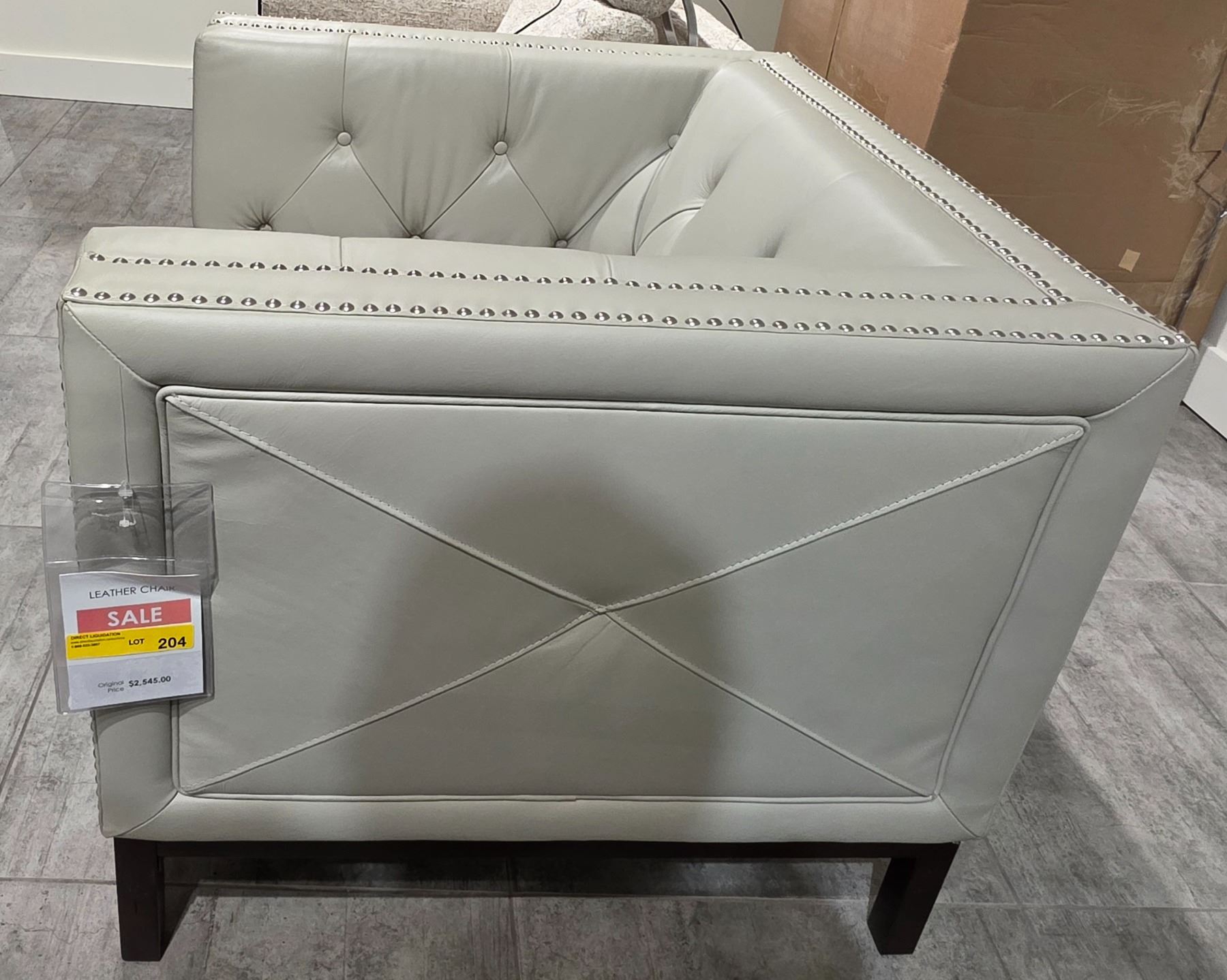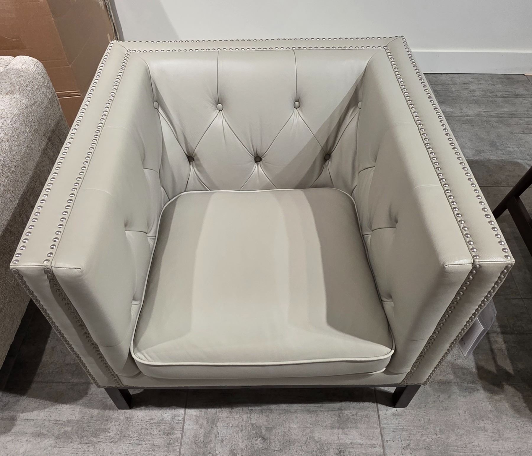 Sandy's - New Beige Leather Chair - RV: $2545 CAD - H30" x W36" x D34" (SIL0049)