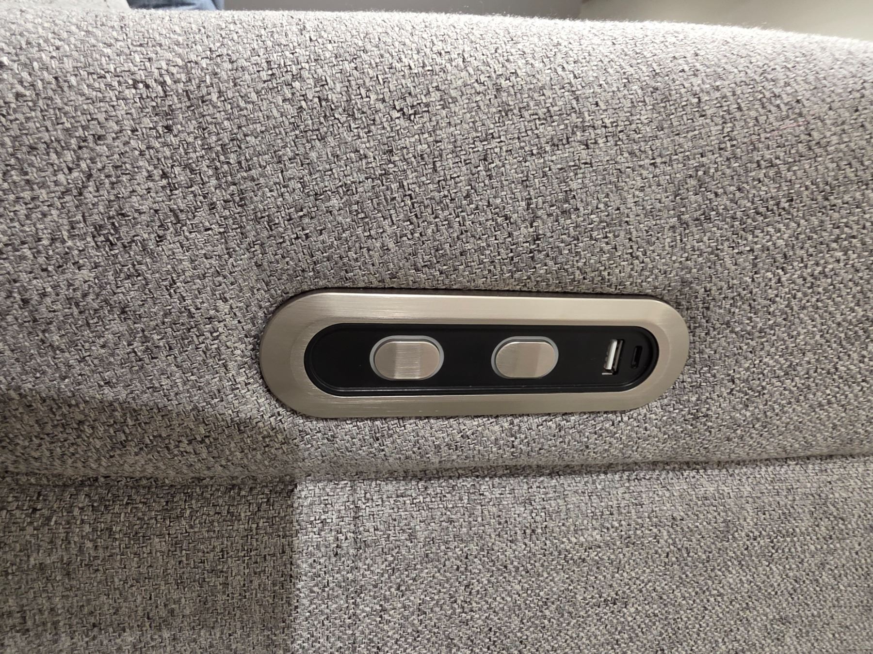Sandy's - New Grey Leather Recliner - RV: $1100 CAD - H36' x W29" (UMO0012)