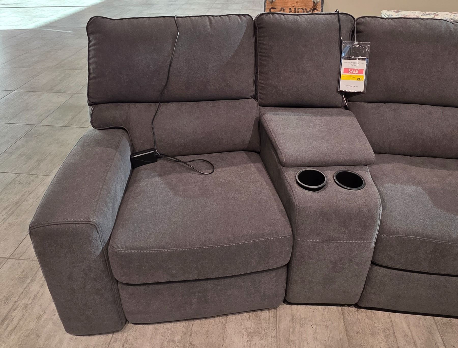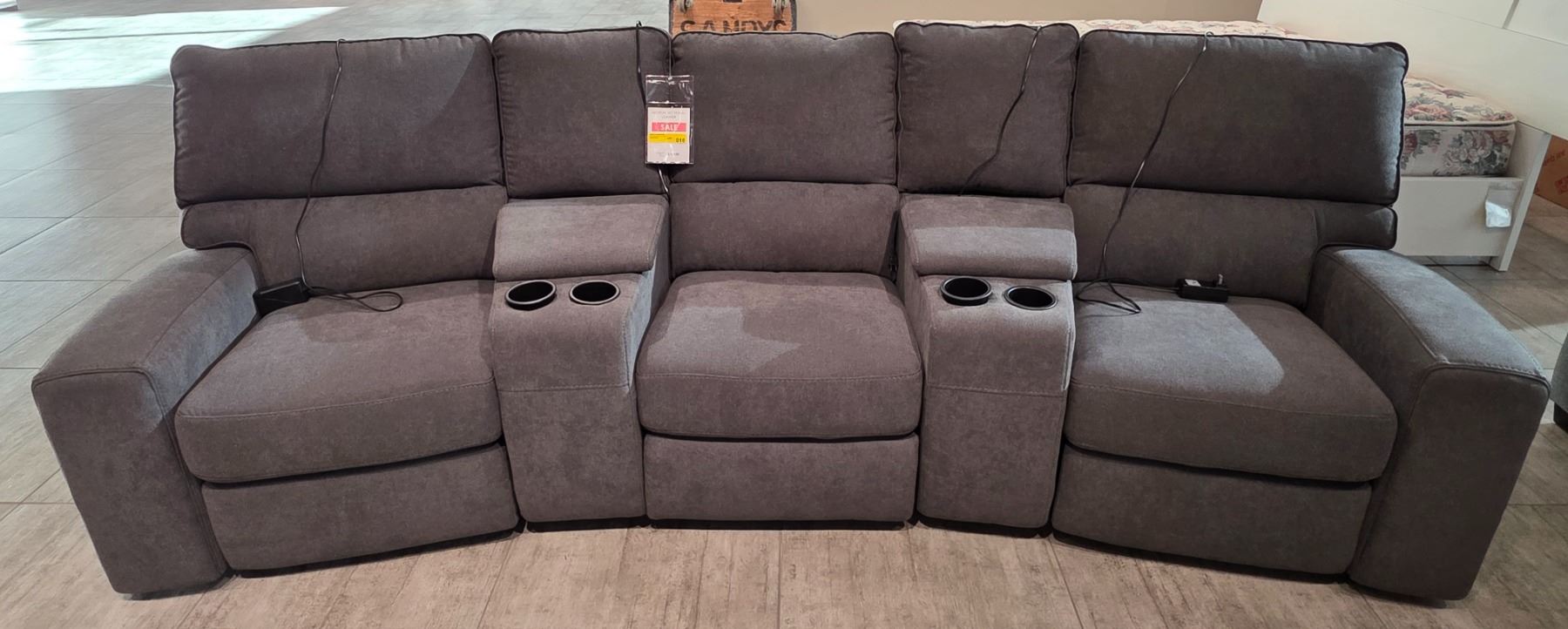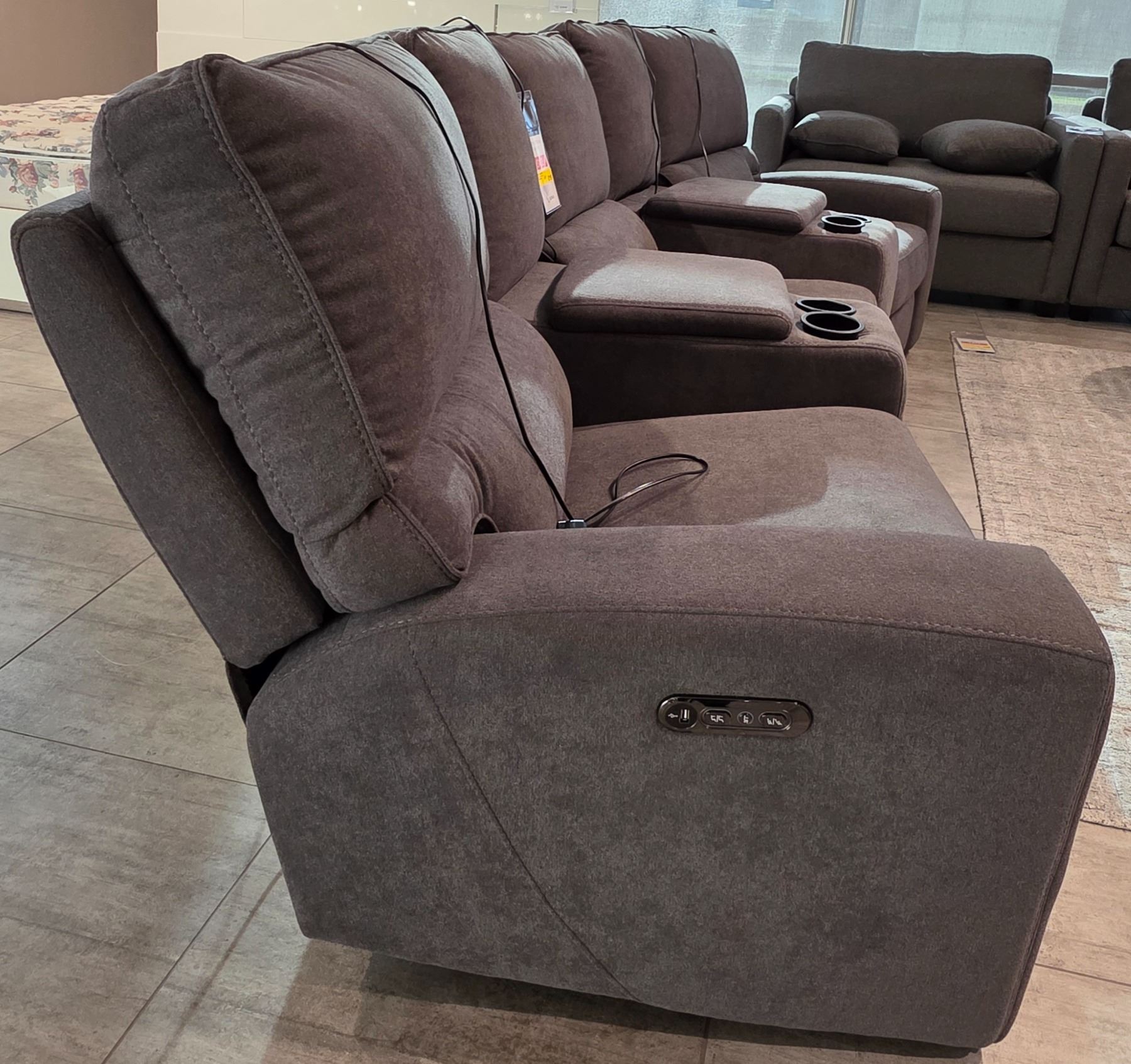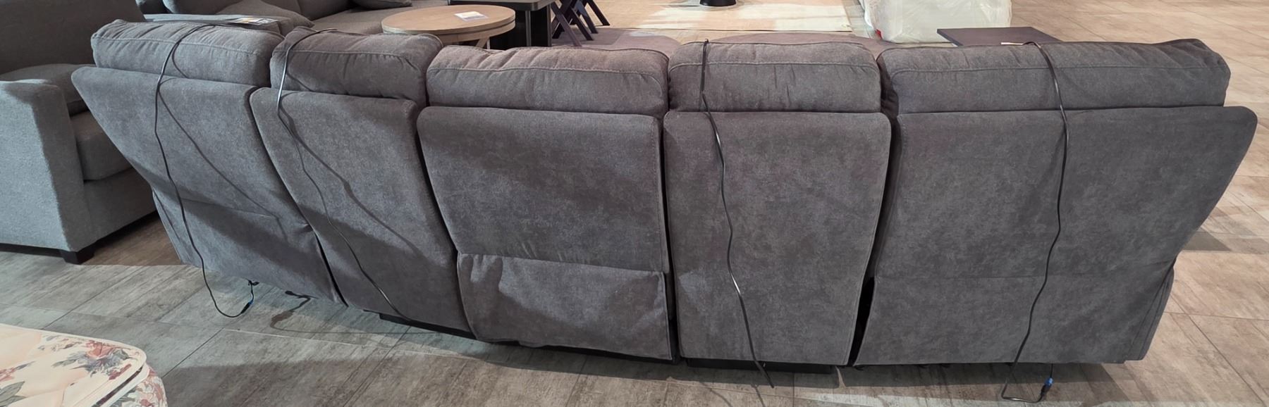 Sandy's - New Motion Sectional Leather Sofa - RV: $5700 CAD - Approx. H34" x W120" x D40" (VIO0085)