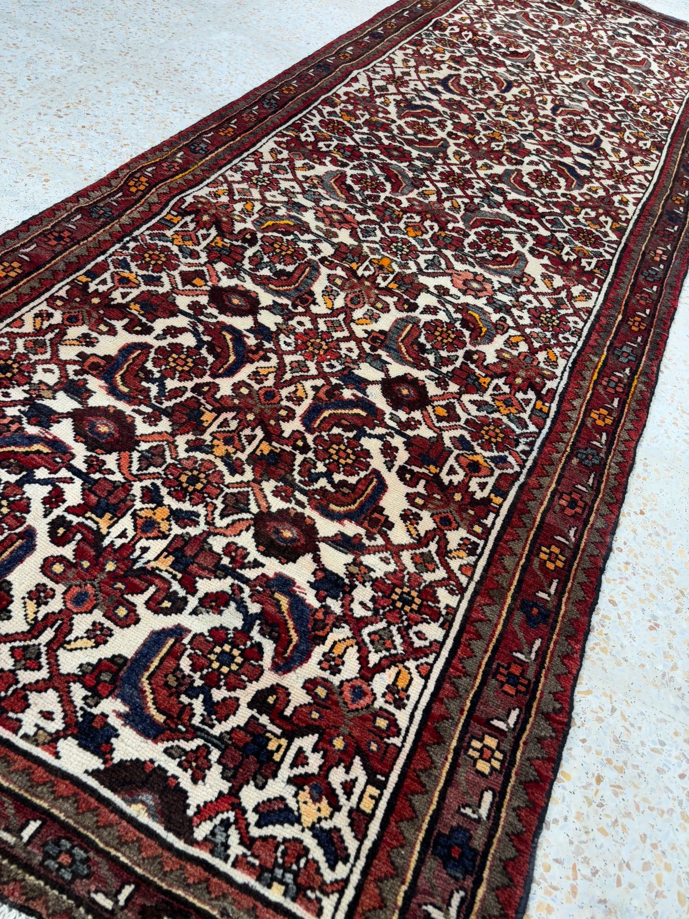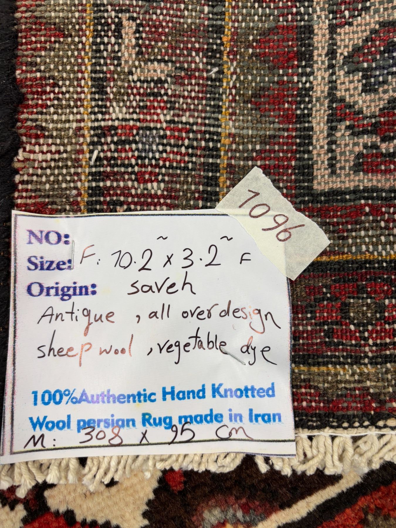 Saveh 100% Authentic Hand Knotted Wool Persian Rug Handmade in Iran all over design Sheepwool Vegetables dye (These carpets have been washed professionally, and for this reason there are no 3tears or dirt in this carpet and it will be delivered to you clean and smooth. Don't miss the opportunity to buy such a carpet) Size: 10.2' ×3.2'