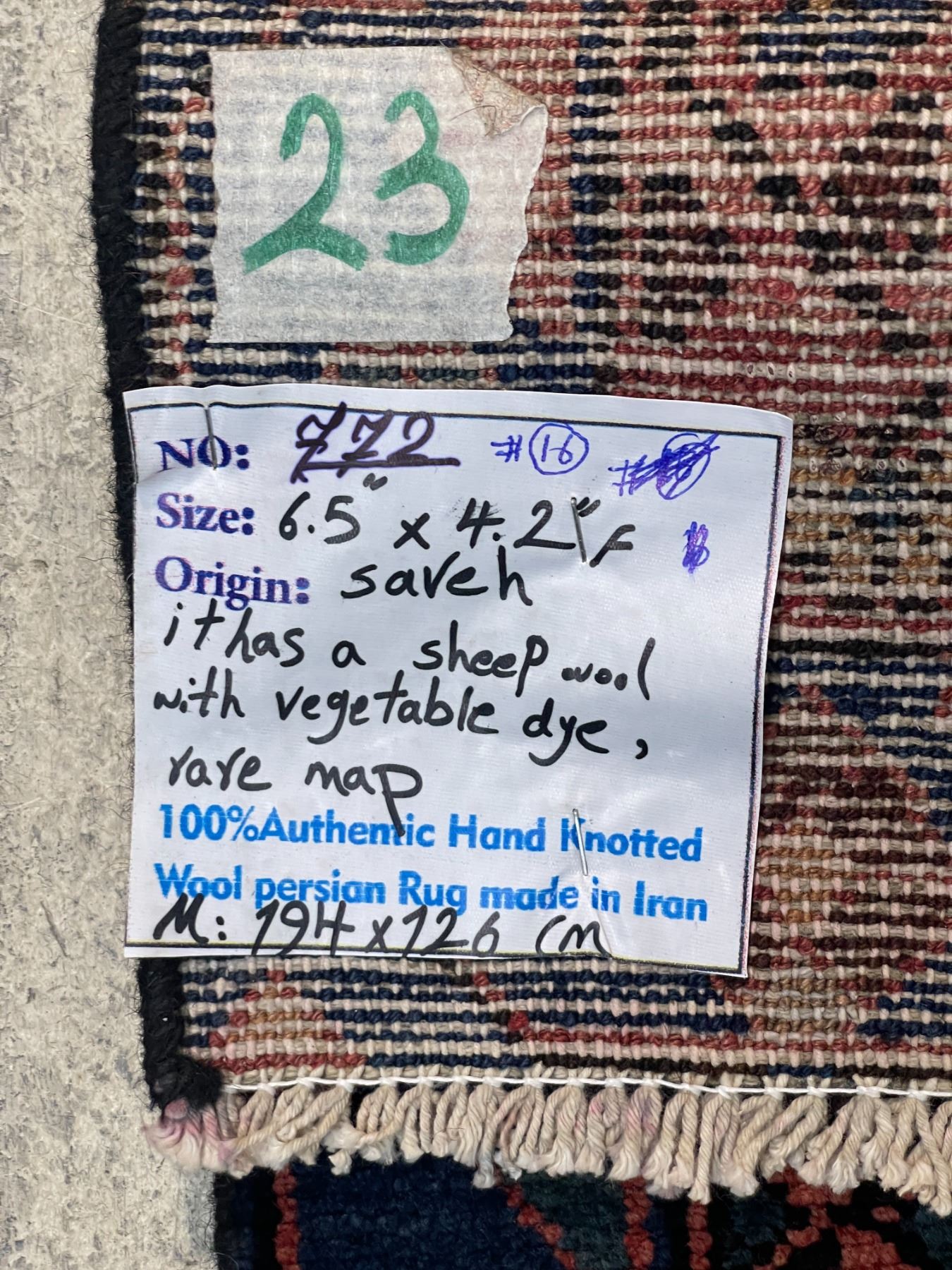 Saveh It has sheep wool w/vegatible dye, rare map Persian Rug Handmade in Iran (M:194x126cm)