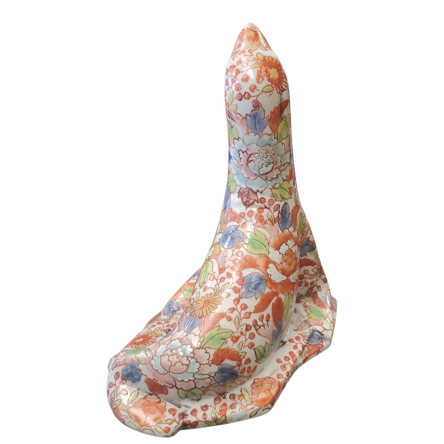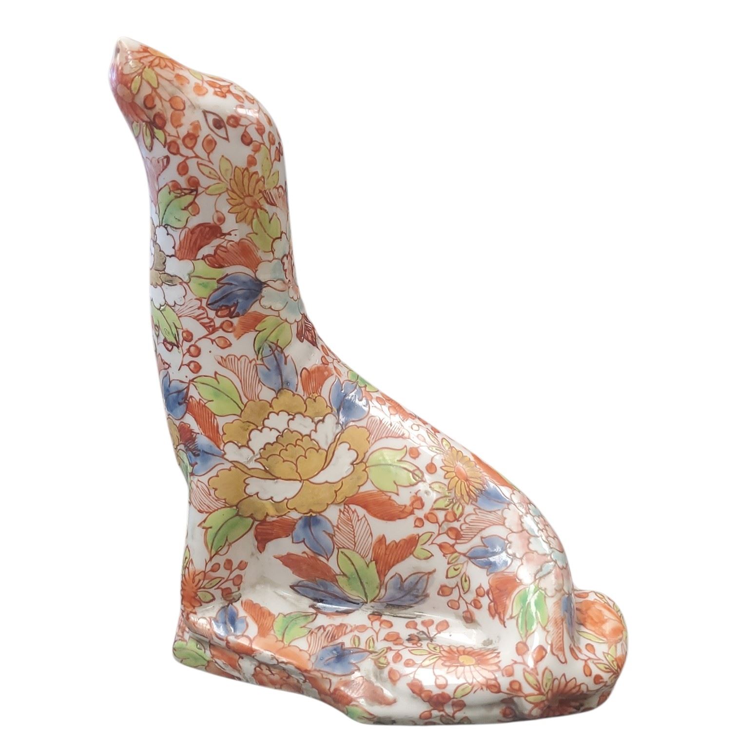 Sea Lion sculpture made from Imari ceramic glazed earthenware, standing 9-Inch tall. Signed by artist Yangcheng. Features detailed craftsmanship and a glazed finish. Item is as pictured.