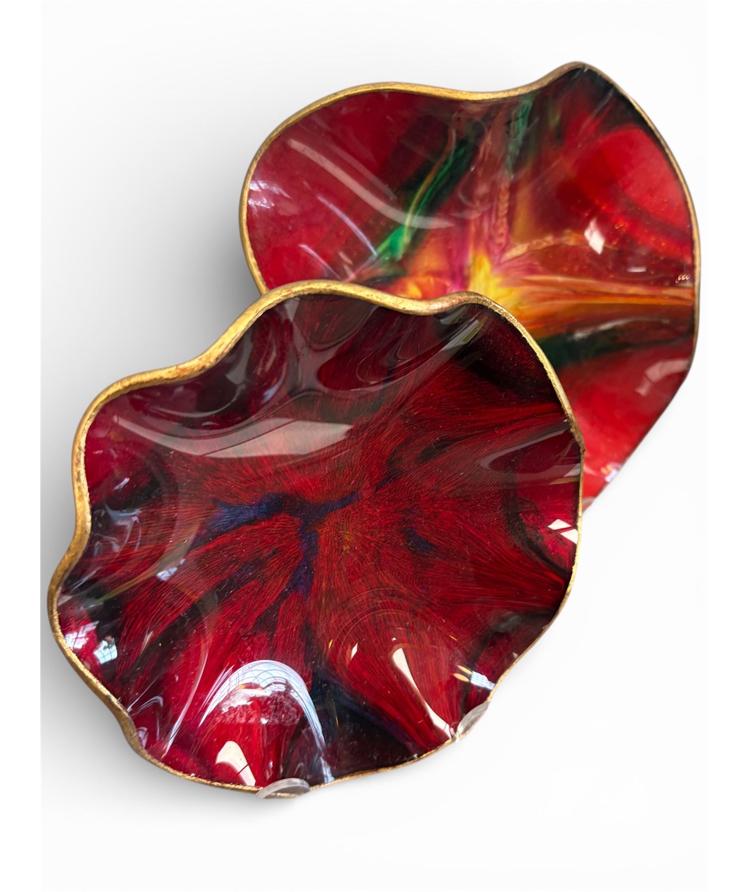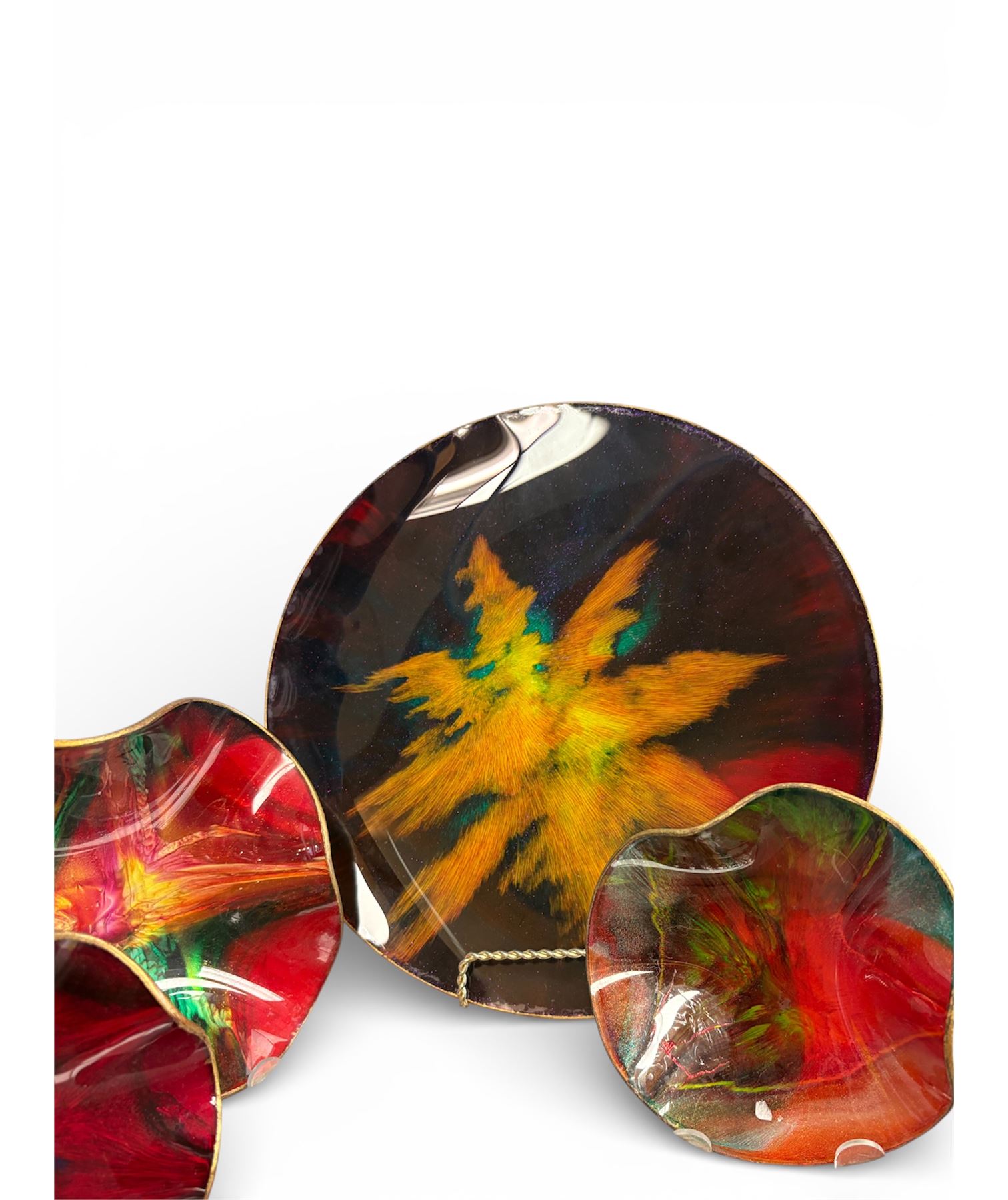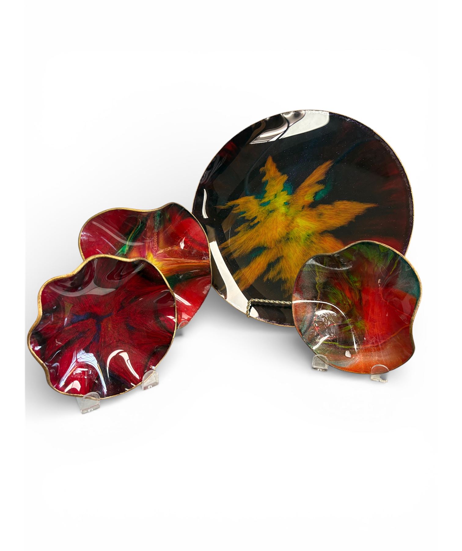 4-piece Seatusse glass collection including one plate and three matching bowls. Features elegant modern design with consistent craftsmanship across all pieces. Material is high-quality glass, with smooth finishes and uniform thickness. Suitable as a curated set for showcasing or use.