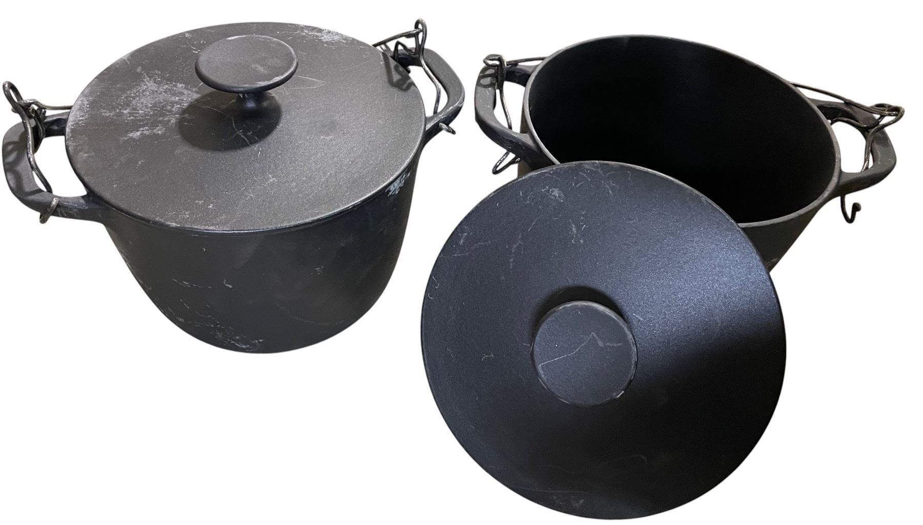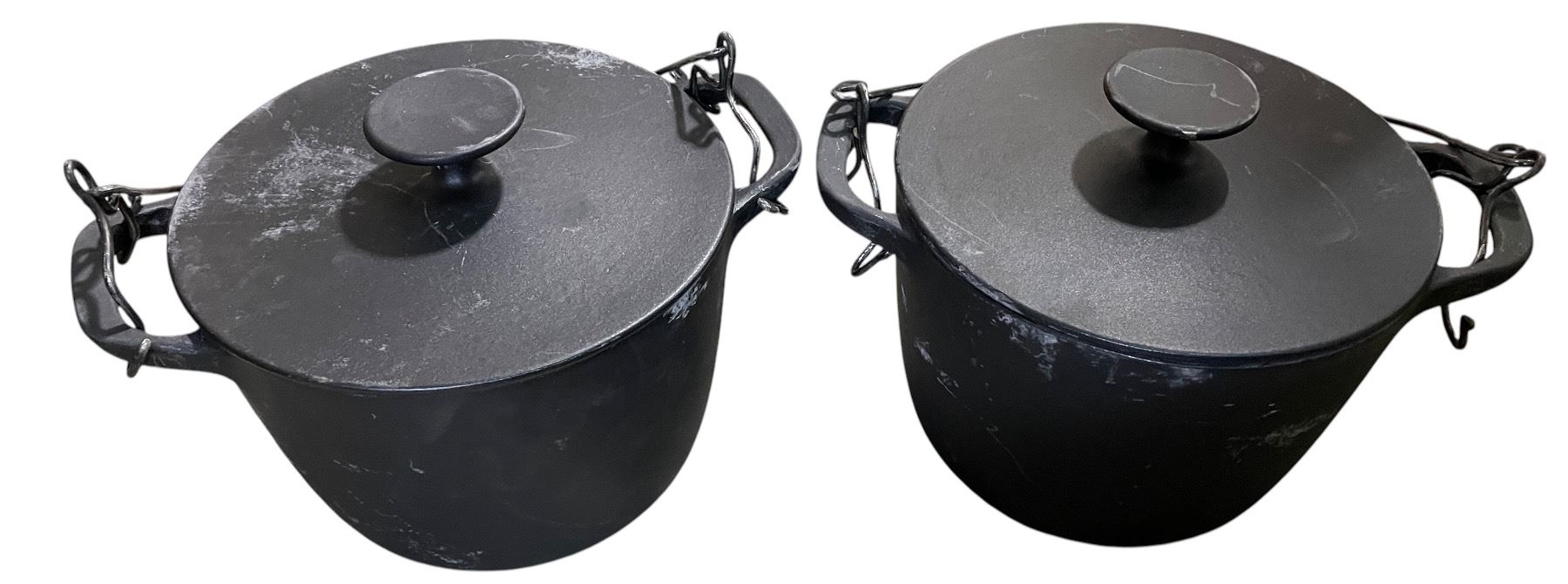 Set Dec Pair of Black Cast Iron Dutch Ovens