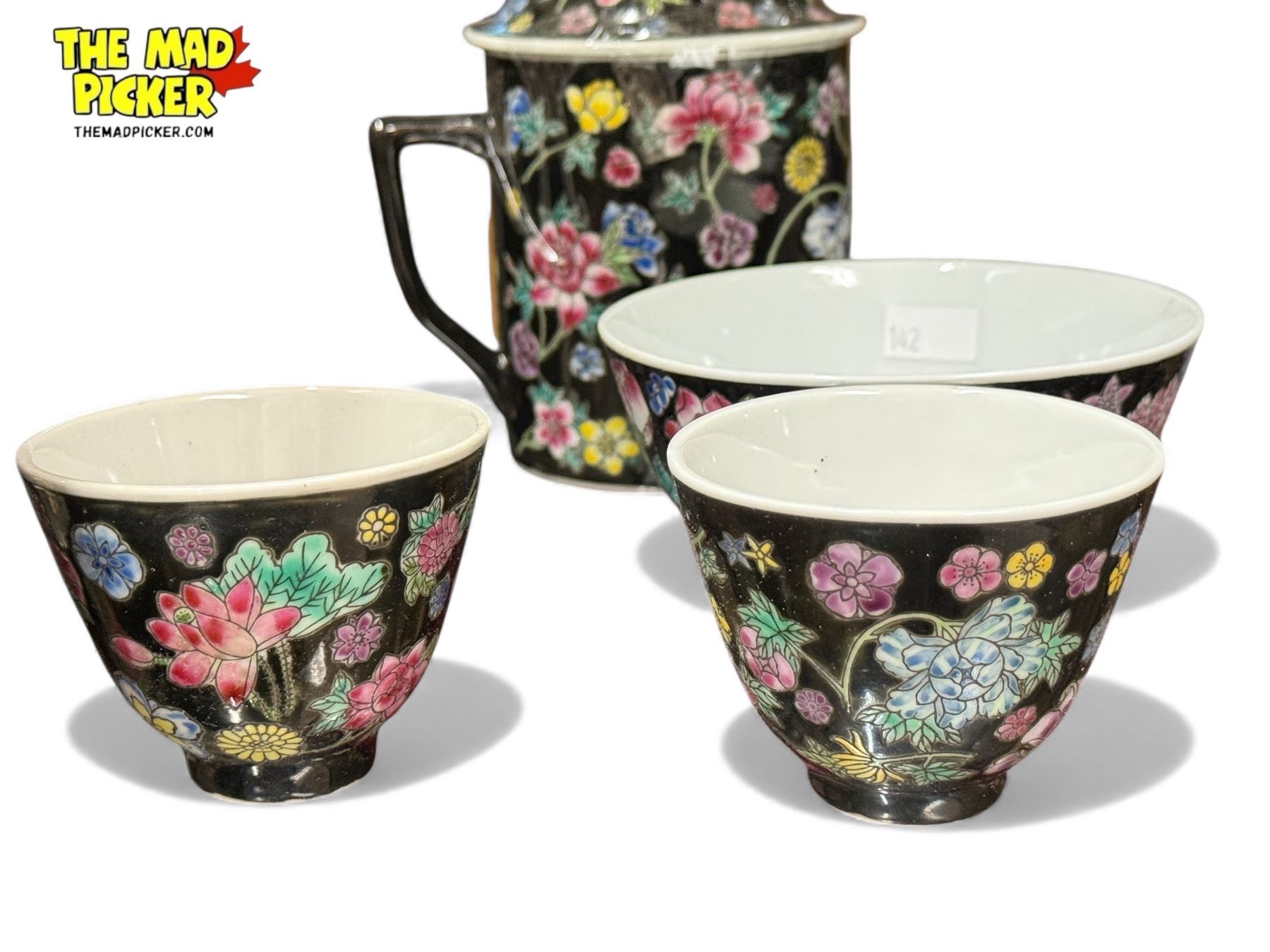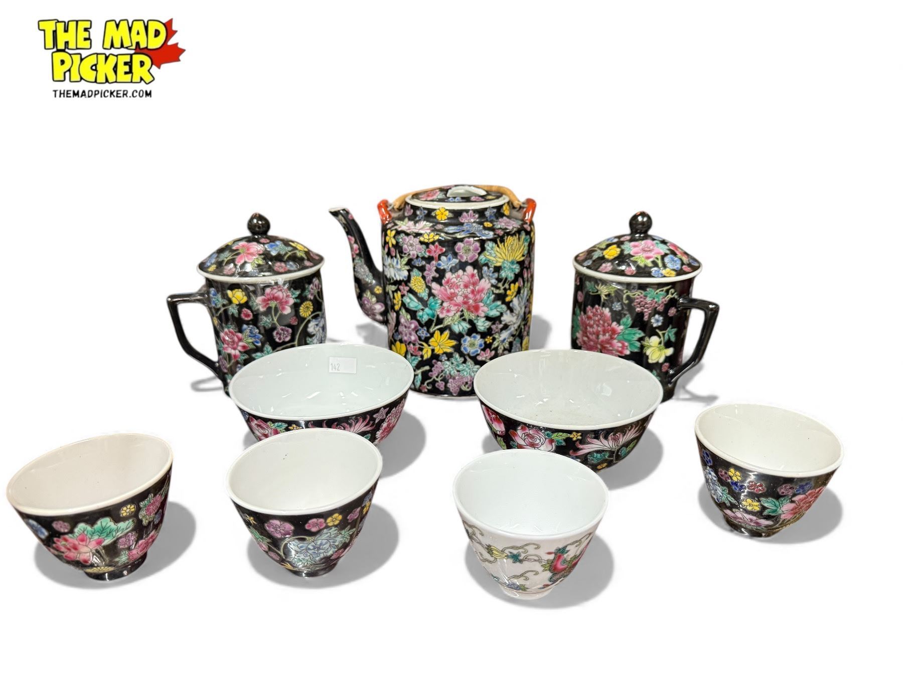 Set Of 8x China Ware + 1 Oddball: Teapot, Lidded Jars, Bowls, Cups