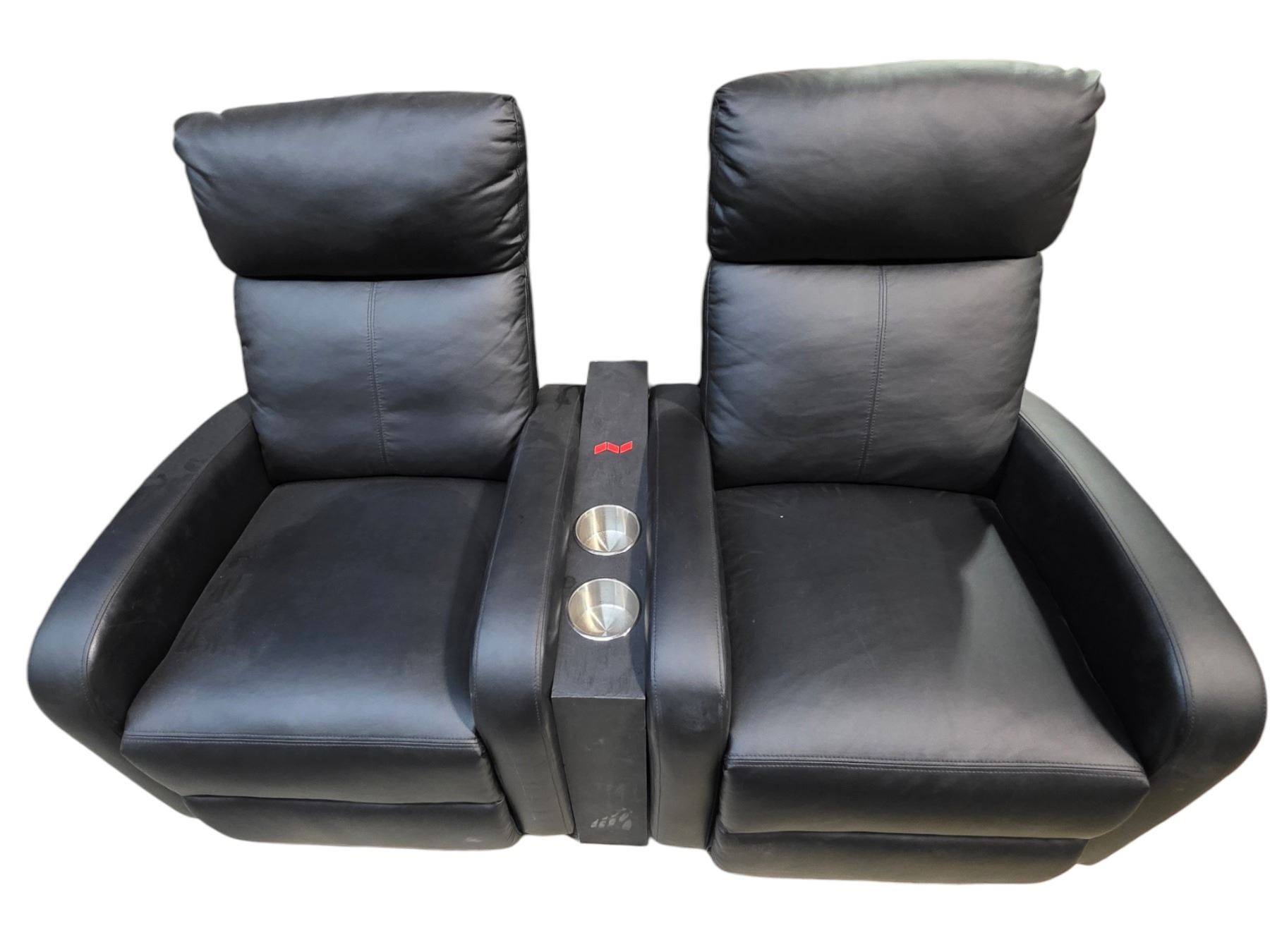 Set of 2 Black Faux-Leather Home Theater Recliners (H36" x W26") with Cupholders
