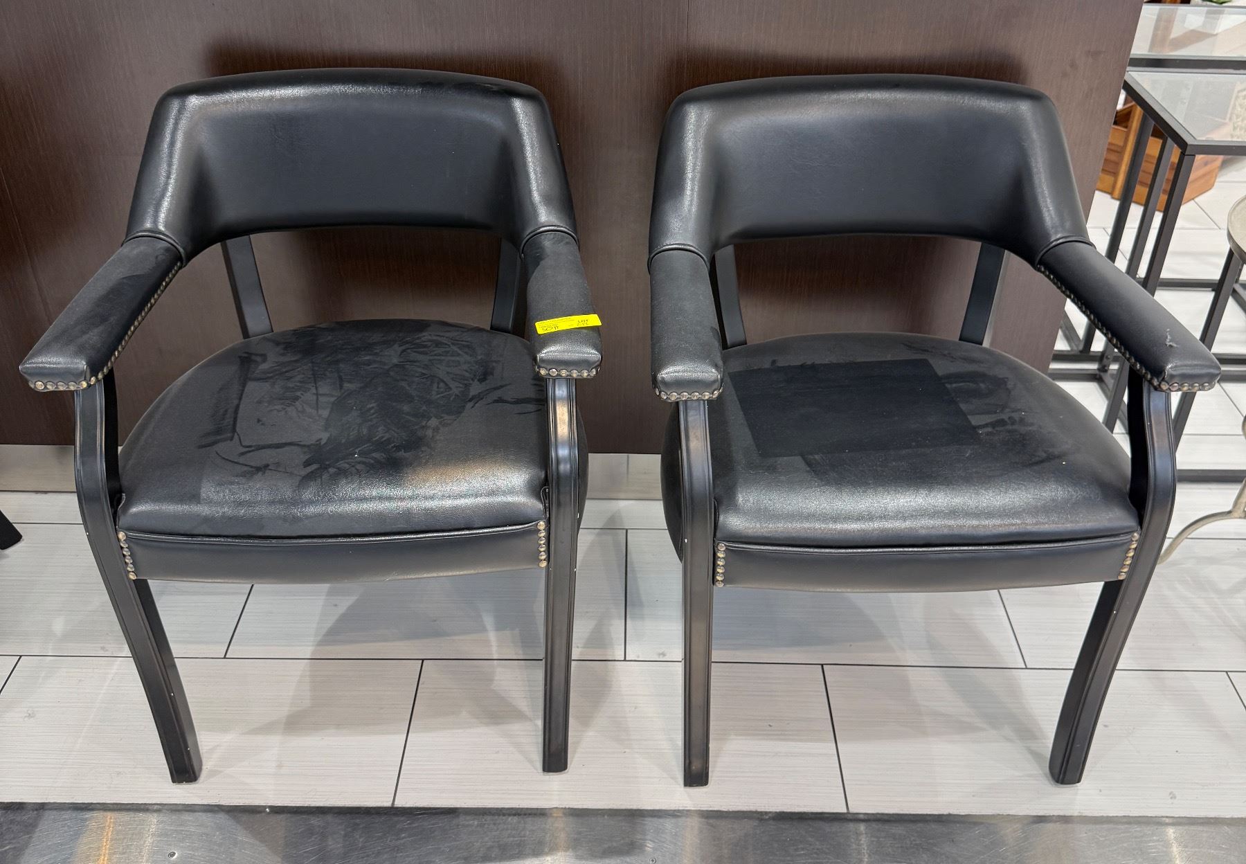Set of 2 Black Faux Leather Salon Guest Chairs - Nailhead Trim & Open Back Design