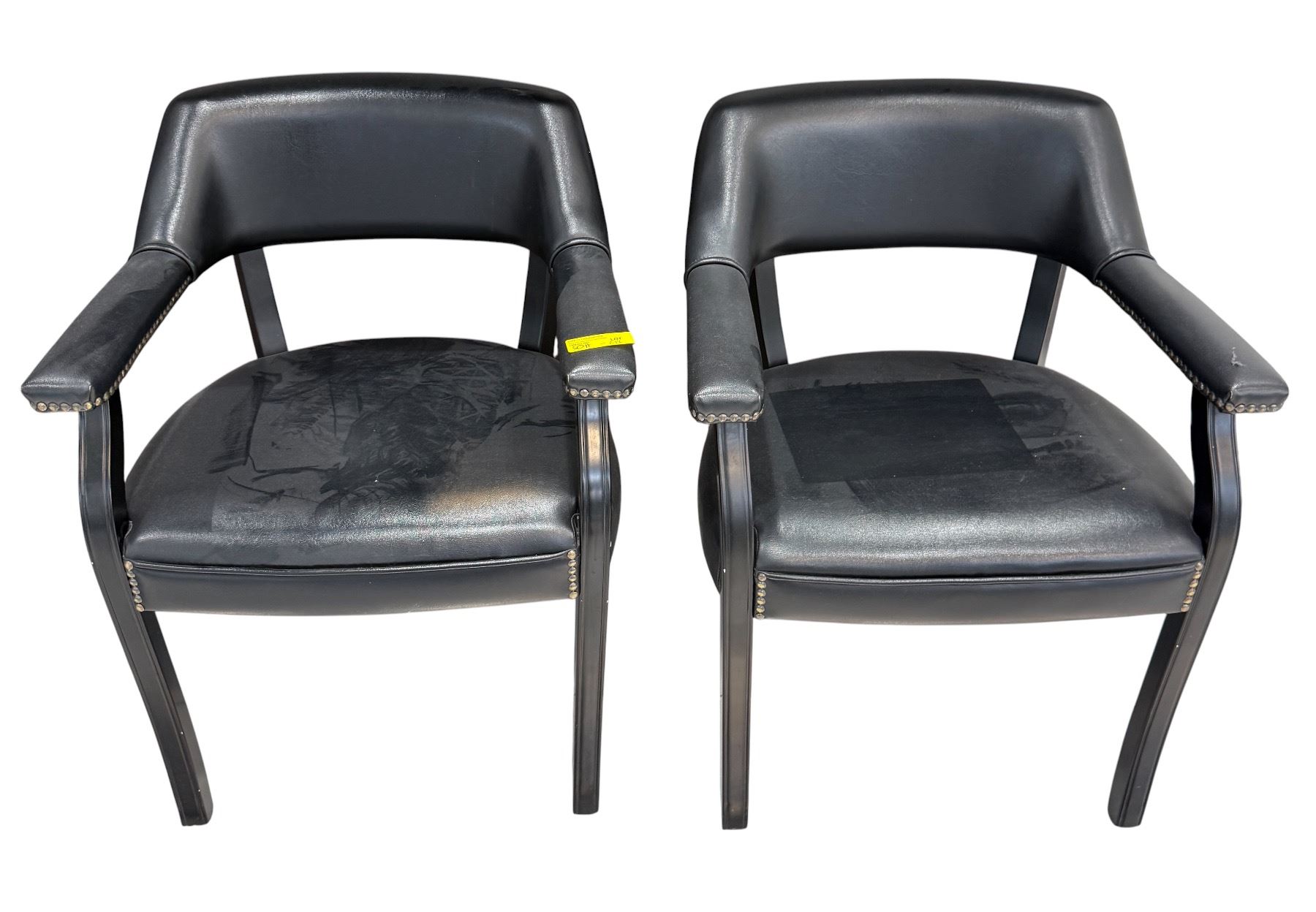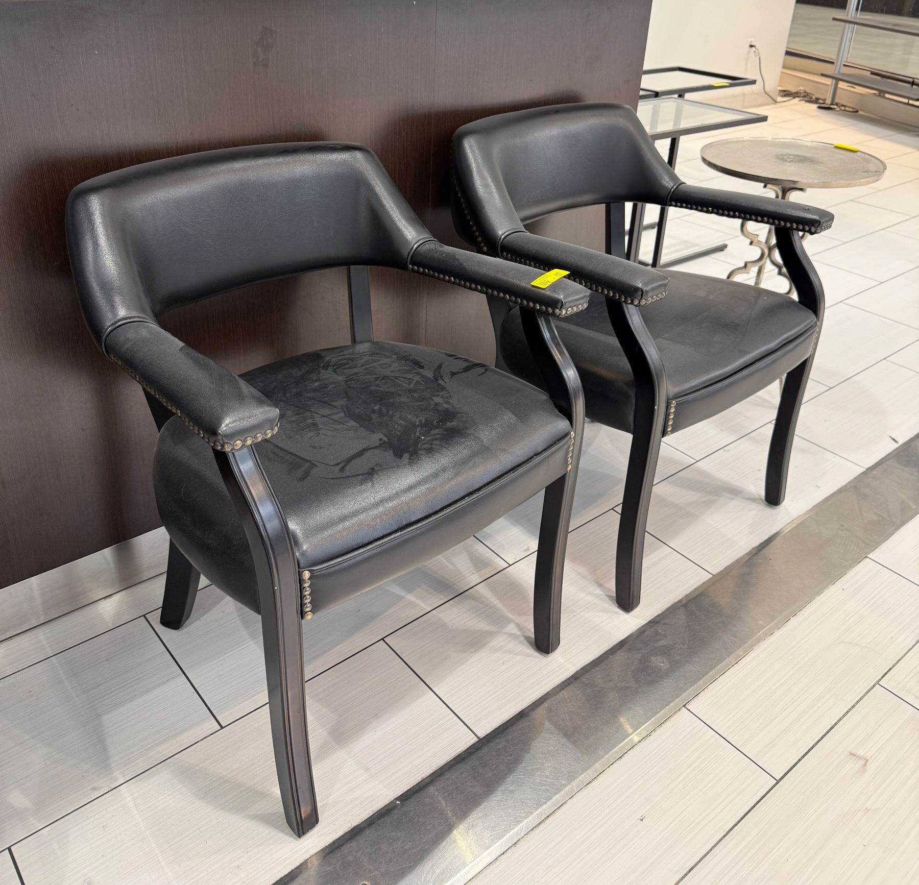 Set of 2 Black Faux Leather Salon Guest Chairs - Nailhead Trim & Open Back Design