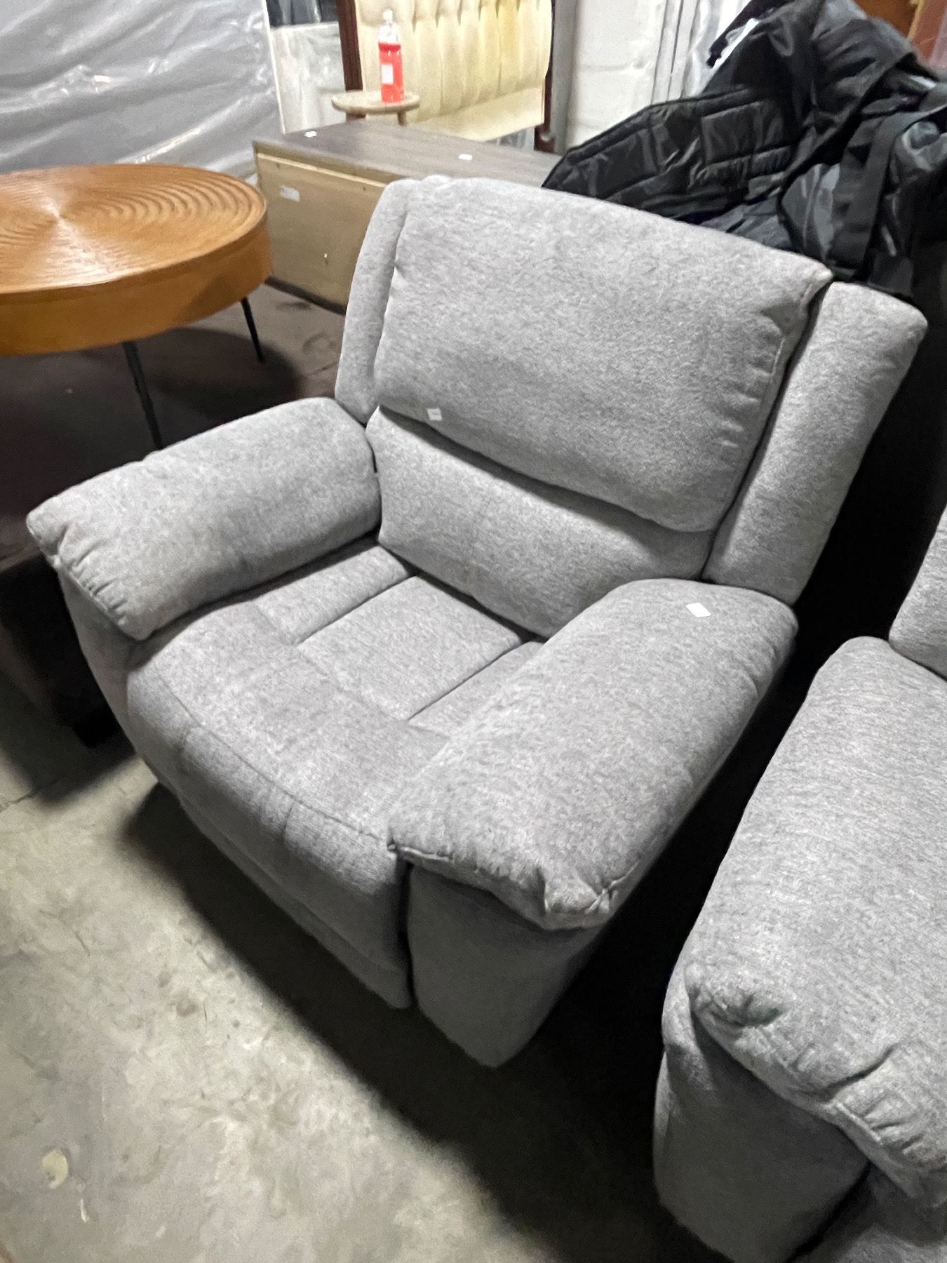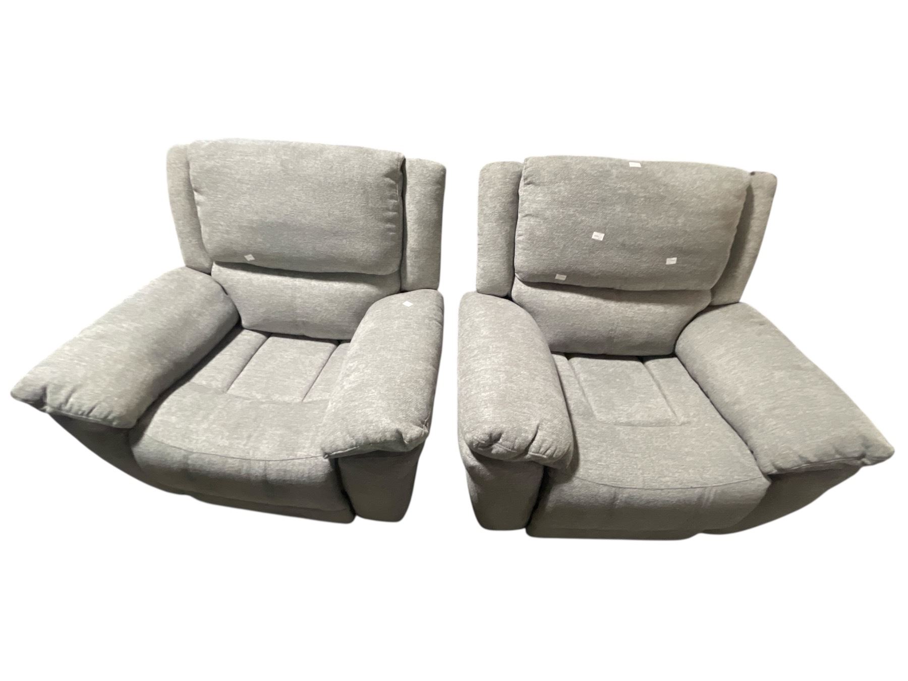Set of 2 Grey Power-Reclining Lounge Chairs, Approx. H36" x 40" x 30" Each