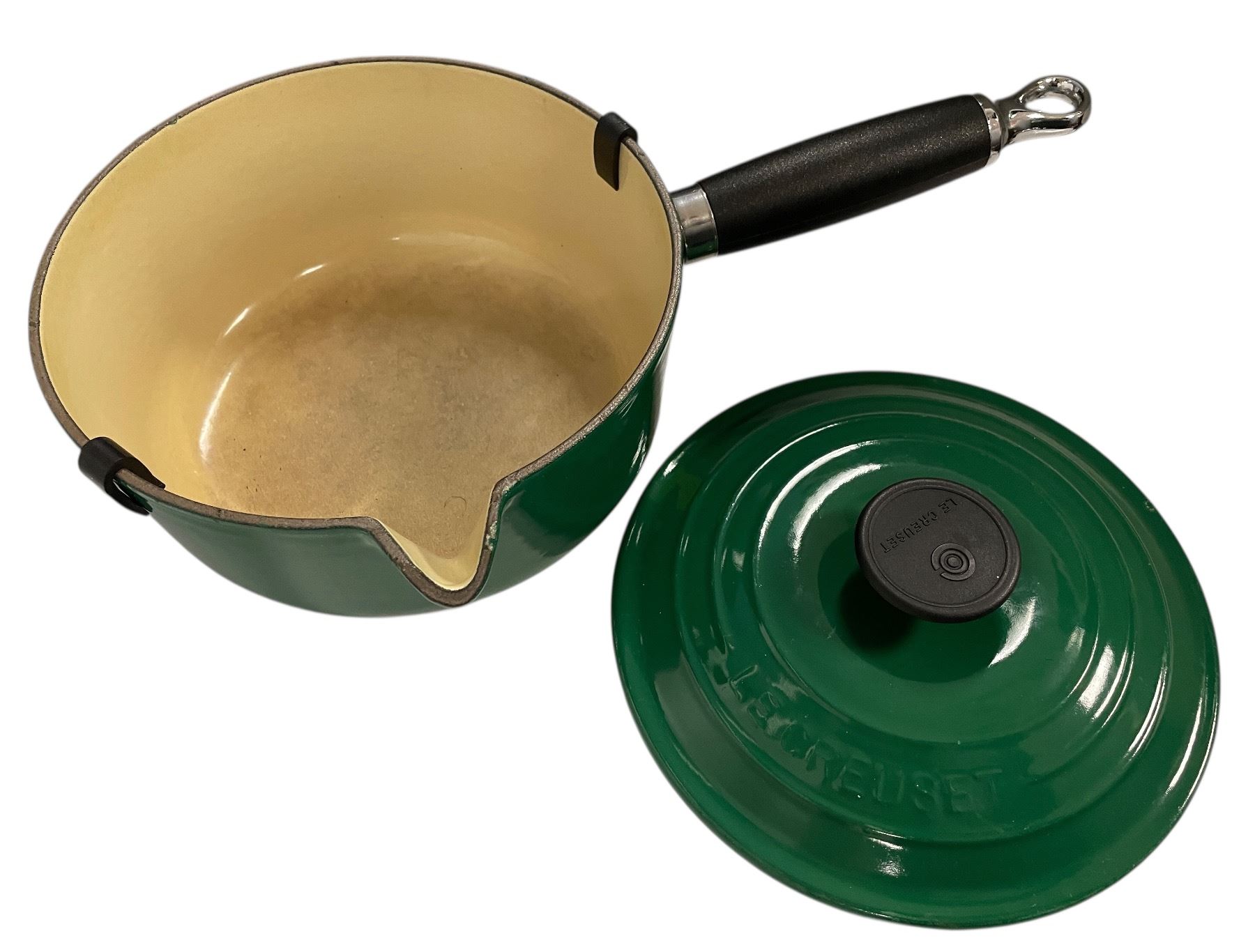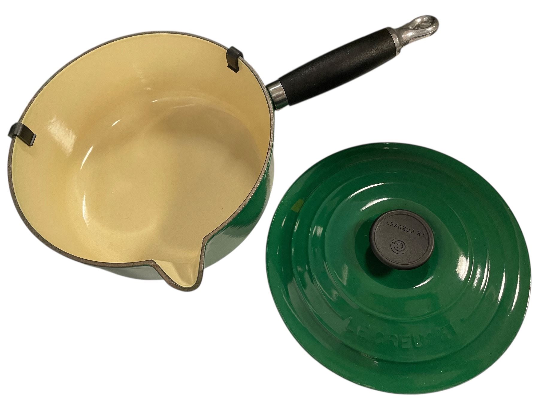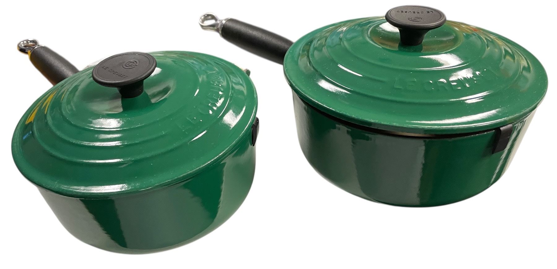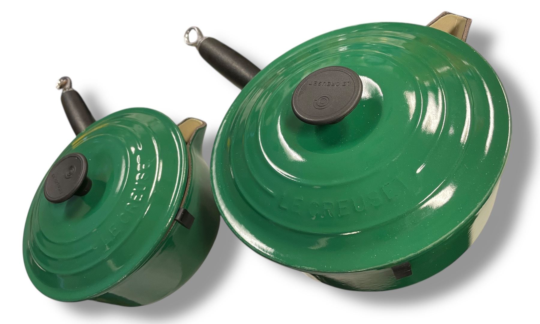 Set of 2 Le Creuset Green Enameled Cast Iron Saucepans with Lids - As Is