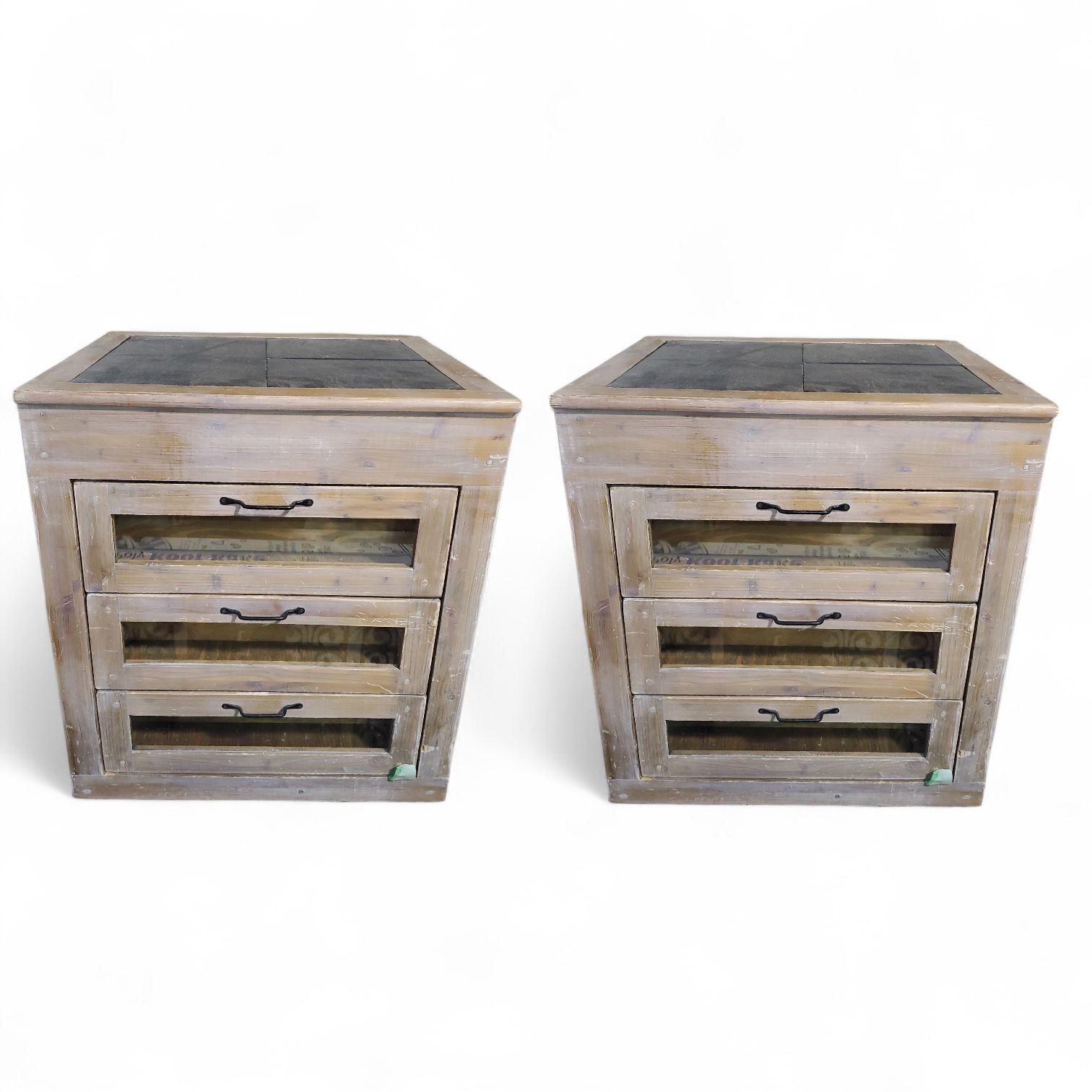 Set of 2 NACH Furniture Rustic Wood 3-Drawer Storage Cabinet