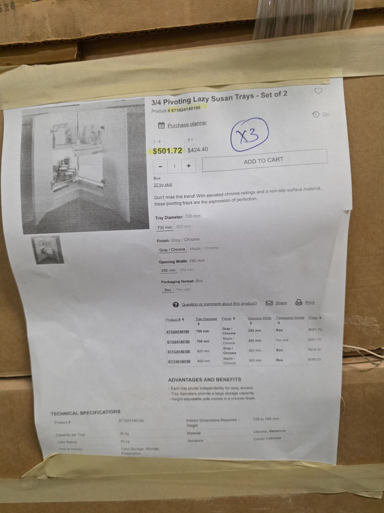 Set of 2 Wood/Steel pivoting 3/4 Lazy Susan trays - Wholesale Value: $500