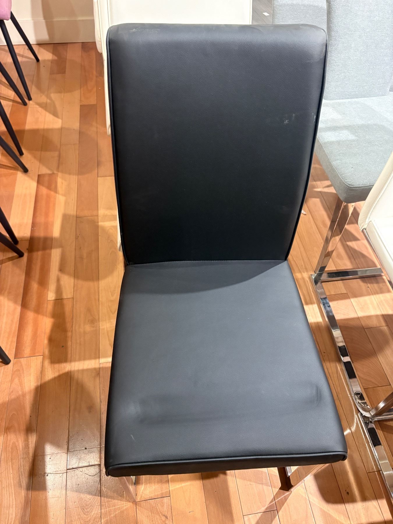 Set of 2 modern black dining chairs with chrome legs
