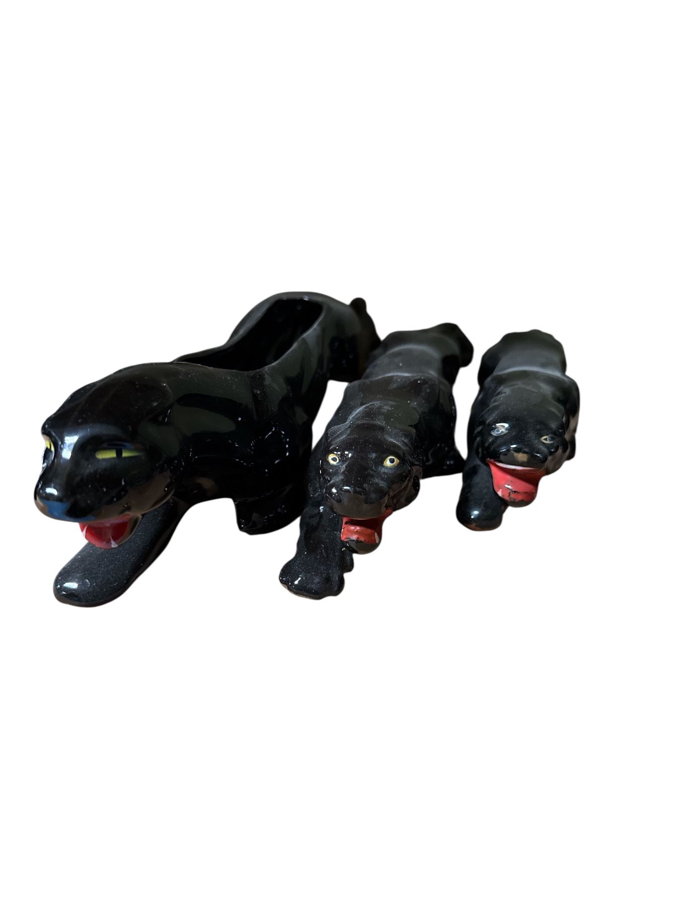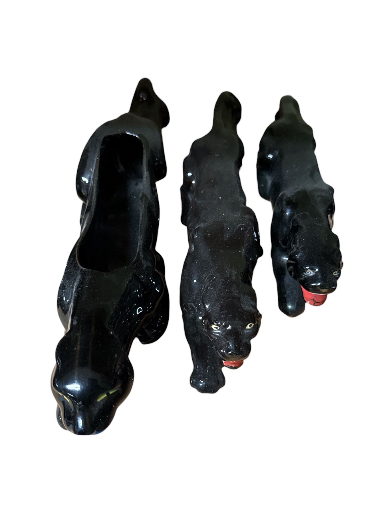 Set of 3 Black Panther Ceramic Figurines - Glossy Animal Figures