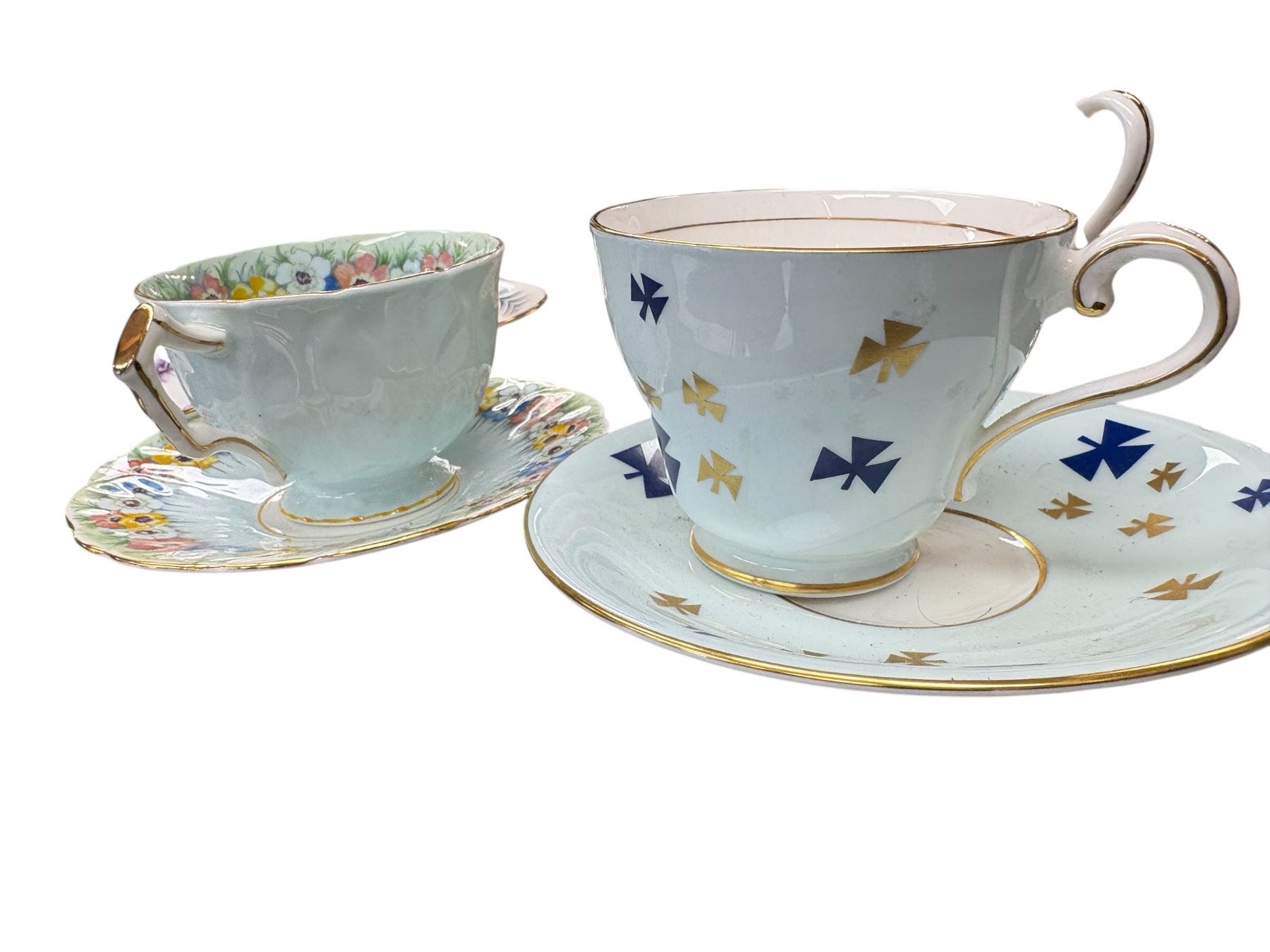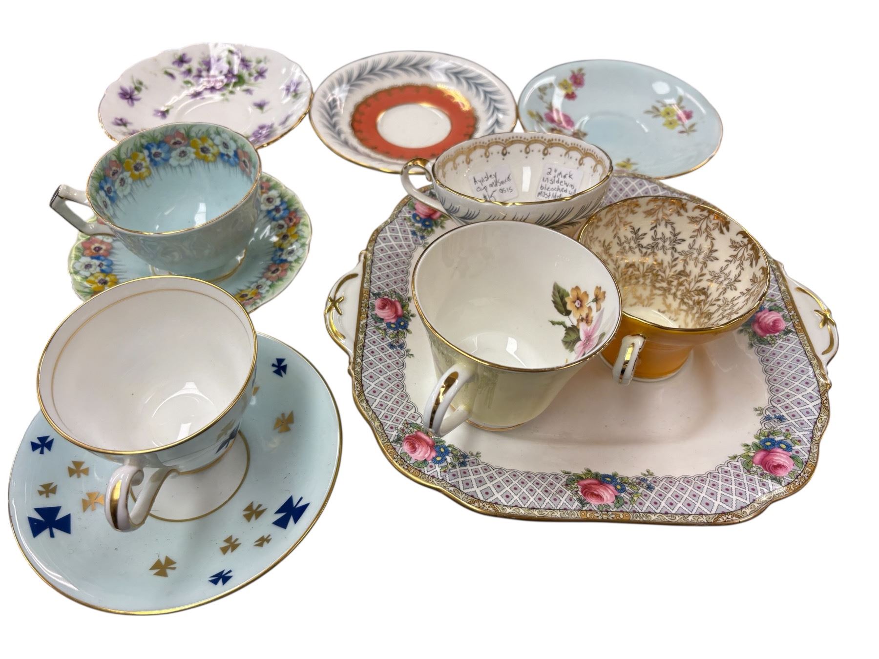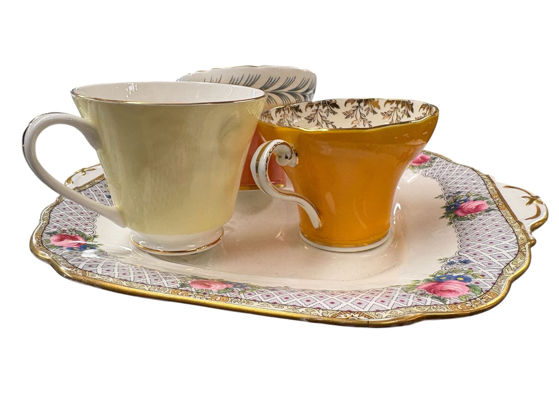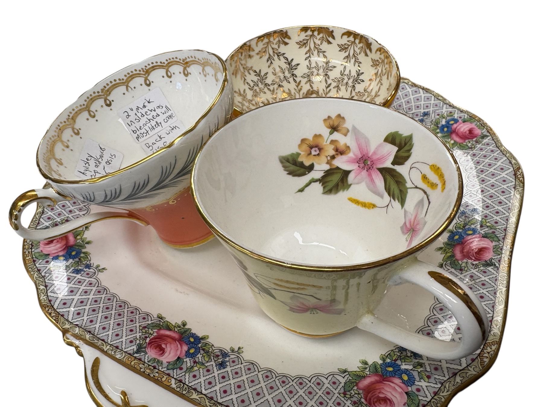 Set of 3 Matching Aynsley Teacups and Saucers with Serving Plate and Two Extra Tea Cups