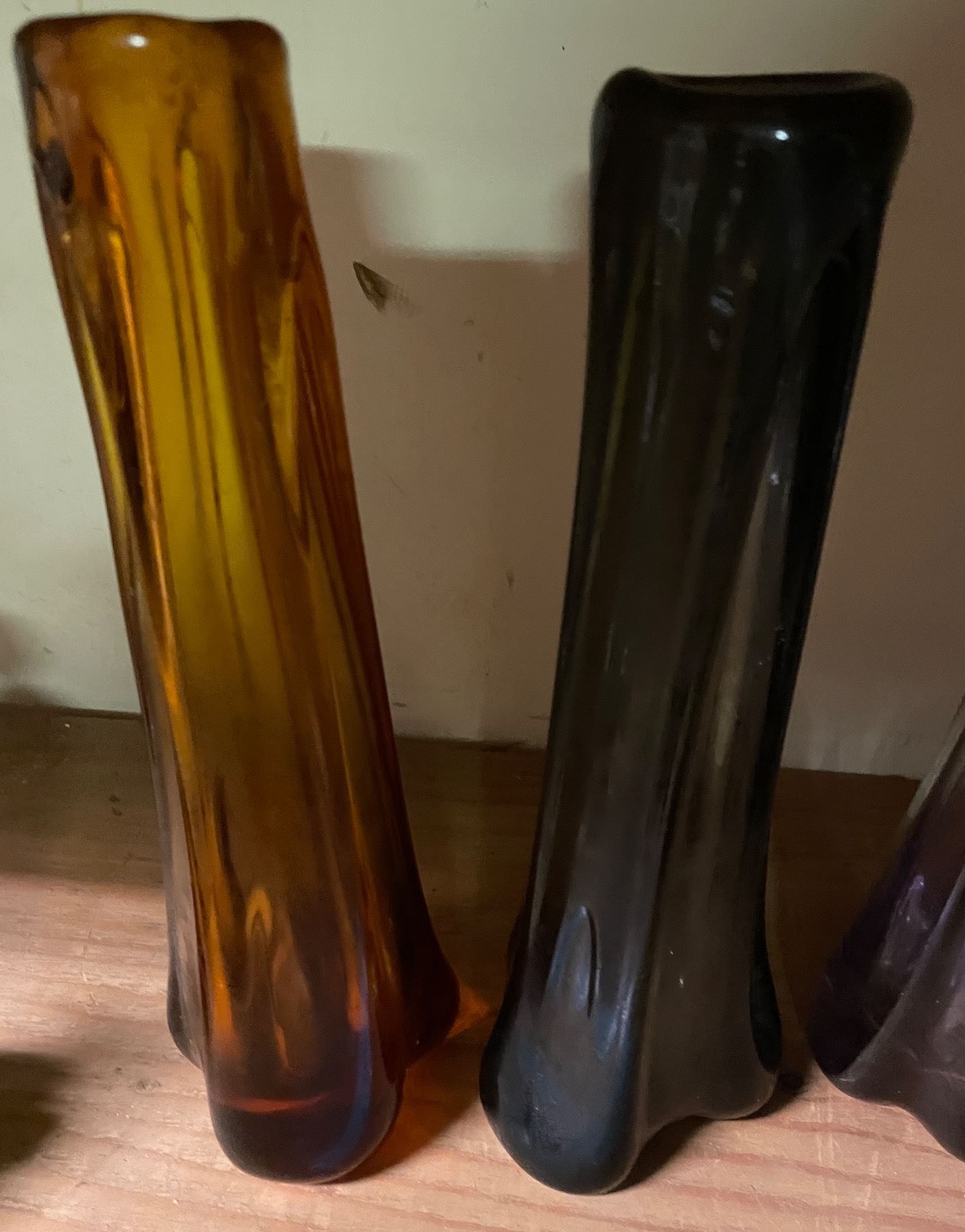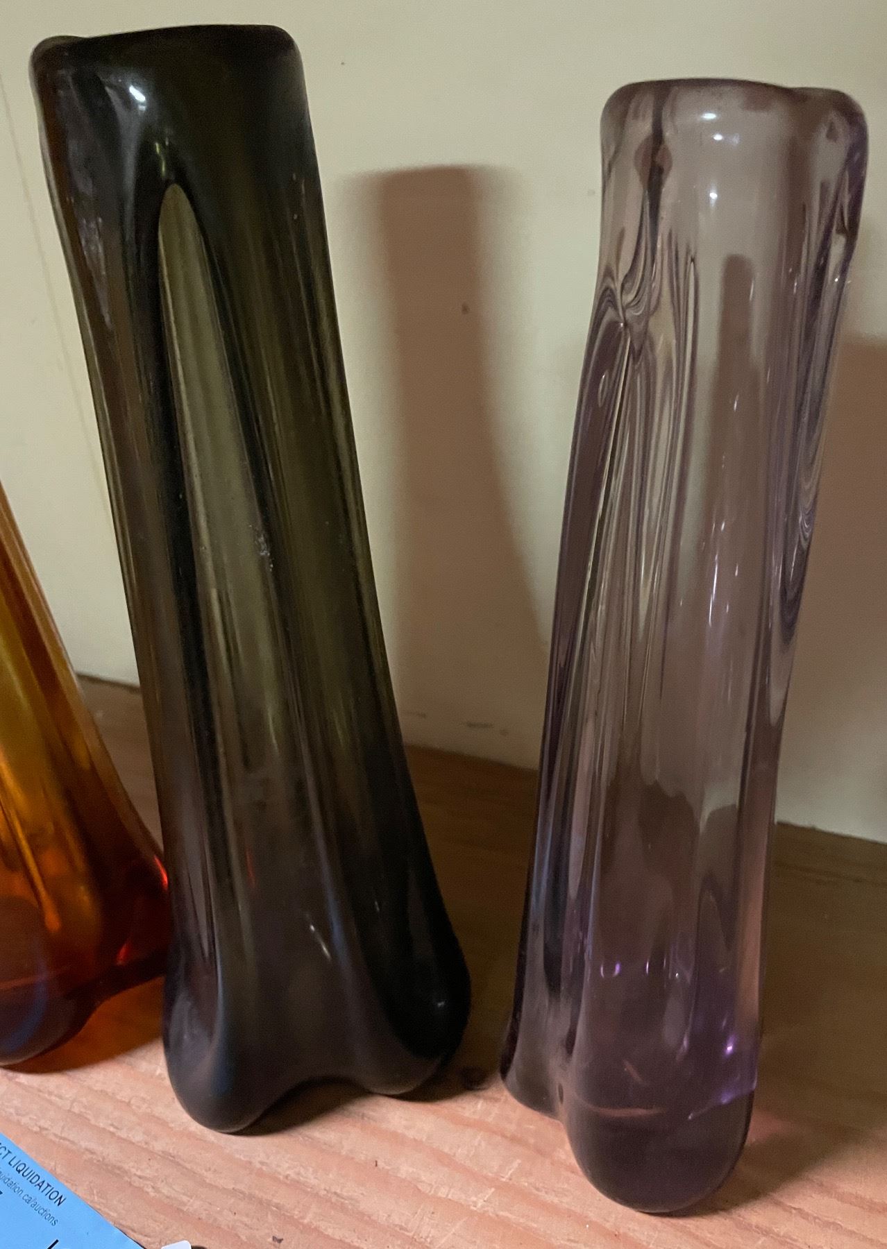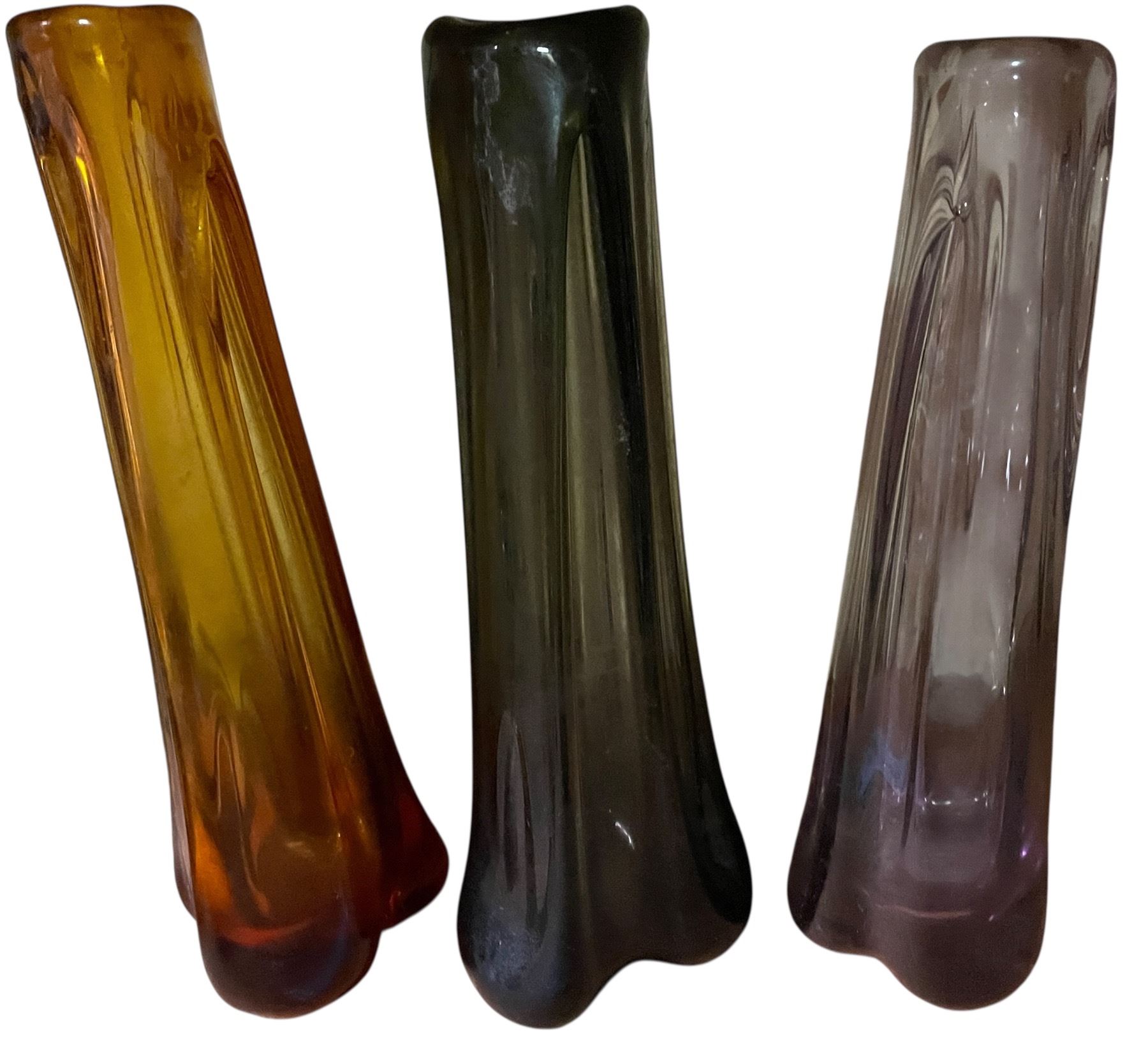 Set of 3 Vintage Mid-Century Modern Art Glass Bud Vases - Amber, Smoke & Amethyst Organic Form
